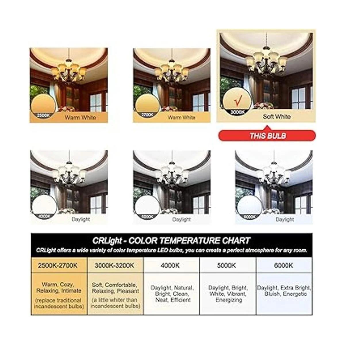 Blanco suave de 3000 K Forma de torpedo de vela alargada B11 mejorada, brillo blanco suave de 3000 K, el color luminoso de las bombillas de 3000 K ilumina un poco más blanco que las bombillas incandescentes tradicionales, 3000 K produce una atmósfera suave, cómoda y saludable, ángulo de haz de 360 grados, con menos calor e instantáneo