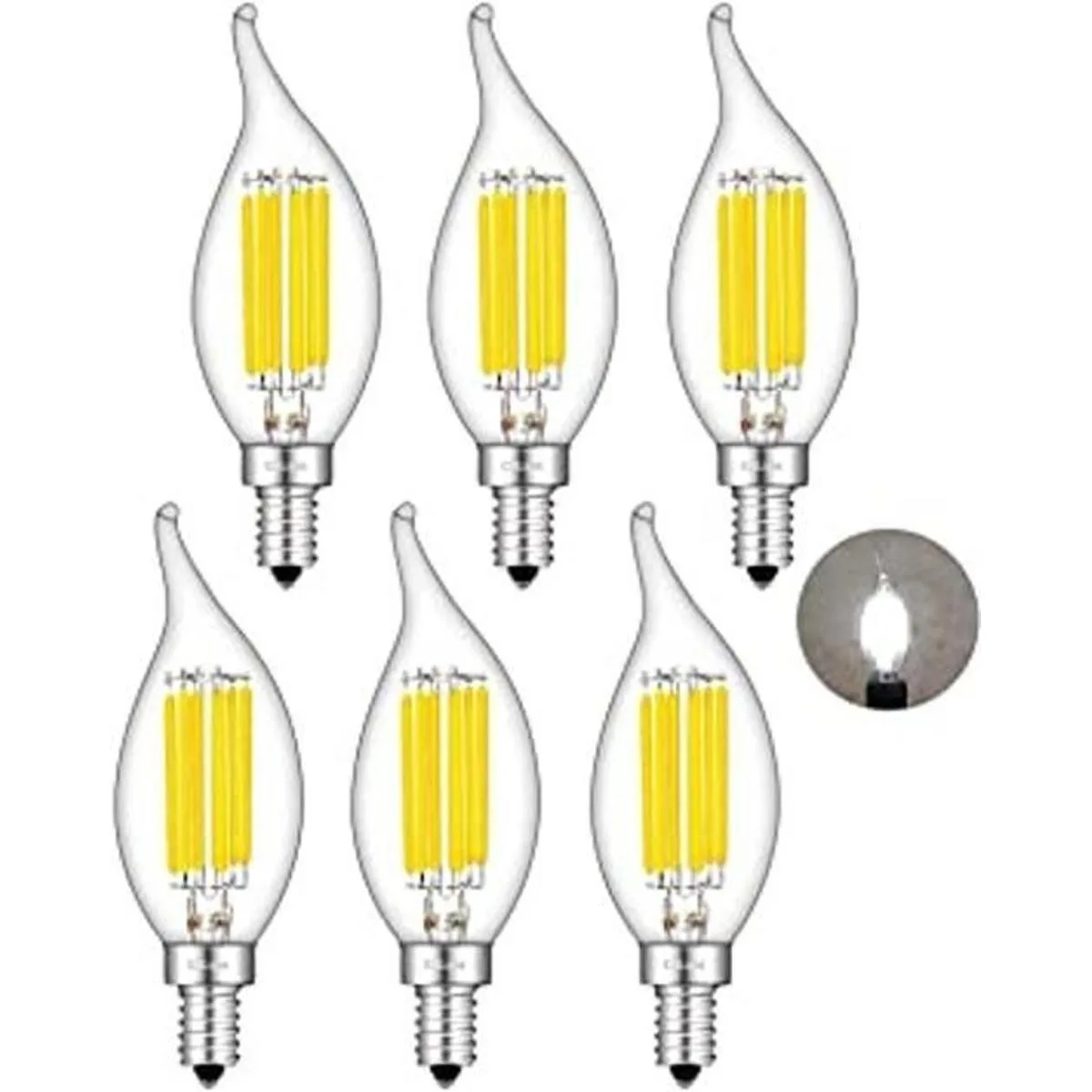 CRLight Bombilla LED regulable 6 W, luz de día, 4000 K, 70 W, equivalente a 700 lm, casquillo E12, 6 unidades, cristal transparente Edison antiguo CA11, forma de llama, forma de llama, 6 unidades