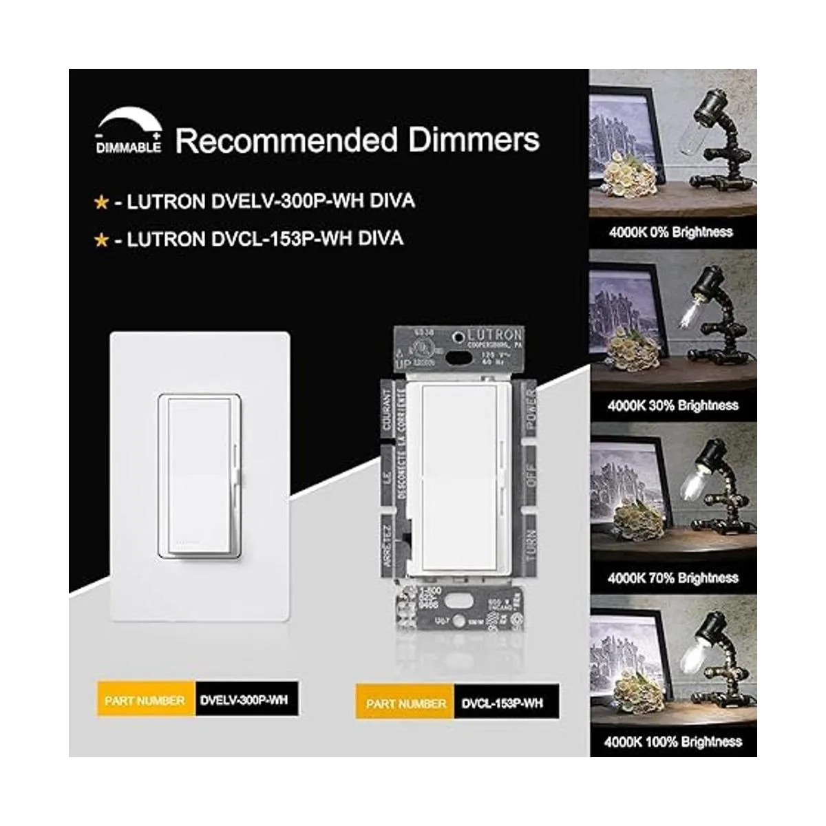 Bombillas LED blancas de luz diurna de 4000 K: estilo tubular Edison T45 antiguo y luz blanca diurna de 4000 K. El color luminoso de las bombillas de 4000 K es diferente de las bombillas incandescentes, 4000 K es brillo de luz diurna, produce un ambiente brillante, natural y limpio, ángulo de haz de 360 grados y menos calor