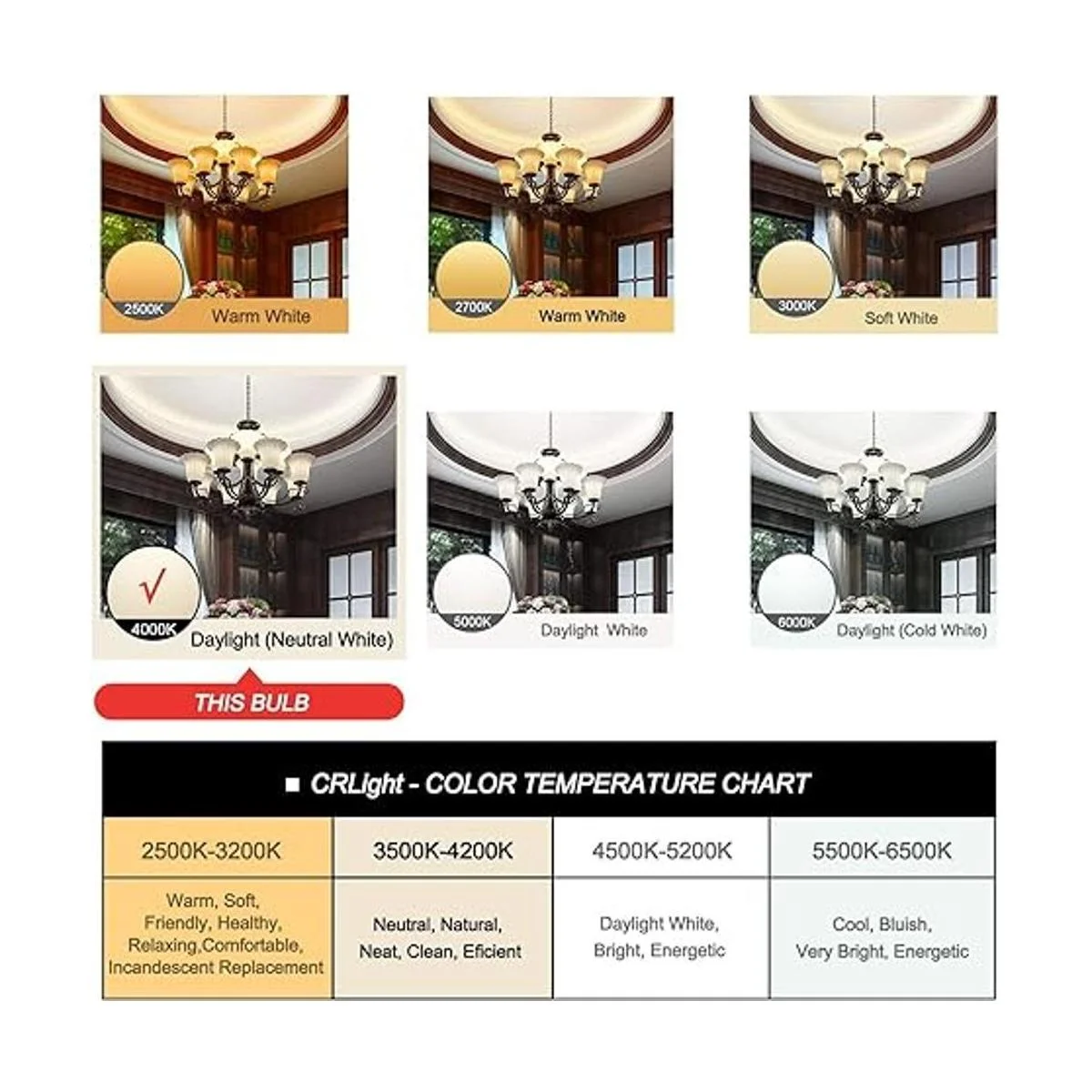 CRLight Bombilla tubular LED de 5 W, 4000 K, luz diurna blanca, 550 lúmenes, regulable, equivalente incandescente de 55 W, reemplaza bombillas CFL fluorescentes compactas de 10 W, bombillas de filamento LED E26 de base media T45, paquete de 8