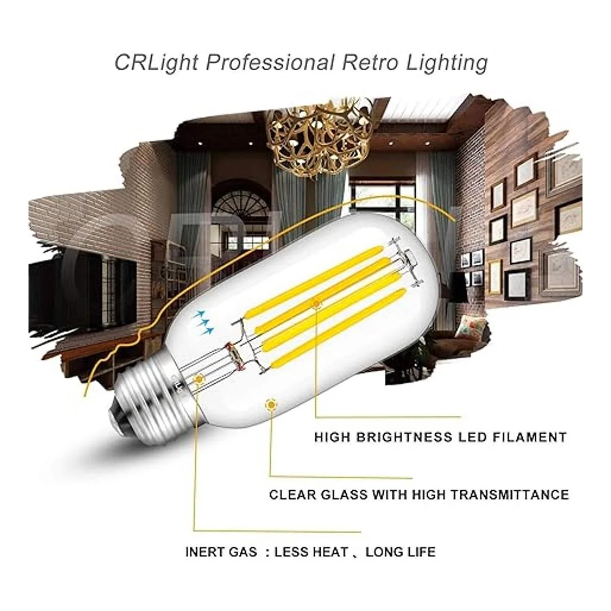 Características técnicas: bombillas tubulares de filamento LED regulables, base mediana E26, CA 110 V130 V, con protección contra sobrecarga, protección contra cortocircuitos y protección contra sobretemperatura