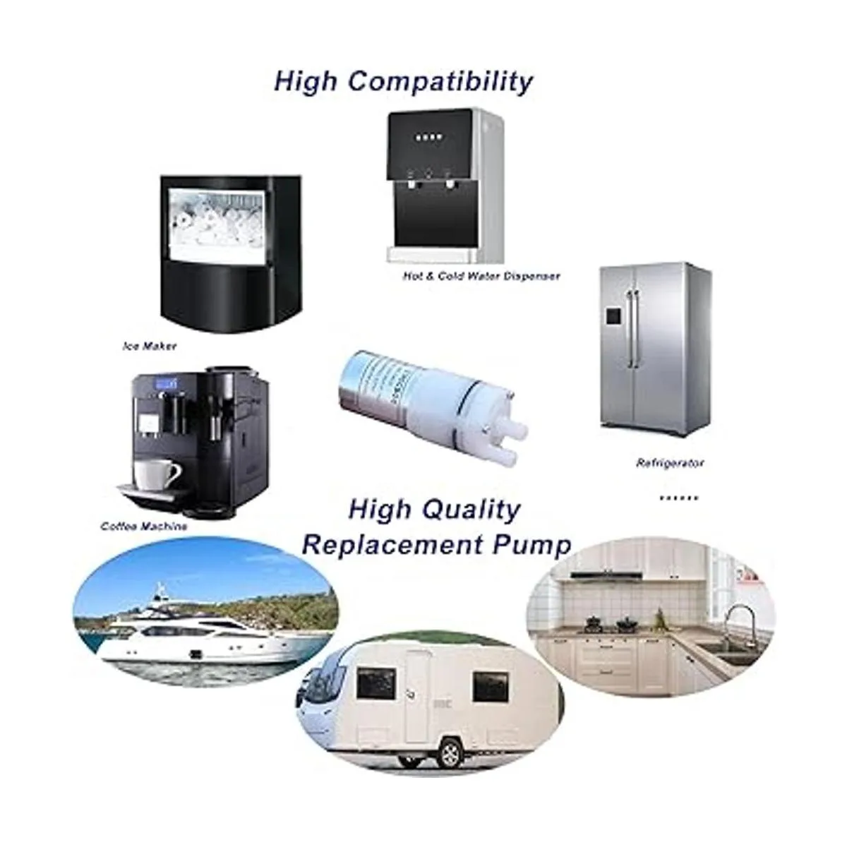 El cabezal de la bomba está hecho de materiales de grado alimenticio. Bomba de repuesto de alta calidad para máquina de hielo, máquina de café, dispensador de agua caliente y fría, refrigerador, pecera, máquina de té, etc.