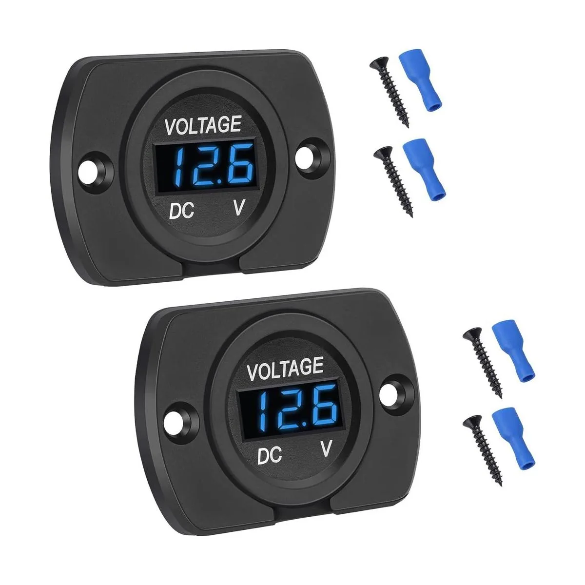 CrocSee Paquete de 2 voltímetros de coche impermeables de 12 V 24 V CC con panel de pantalla digital LED, indicador de voltaje redondo con terminales para automóvil, motocicleta, remolque de viaje, camión, barco, ATVUTV pantalla LED azul