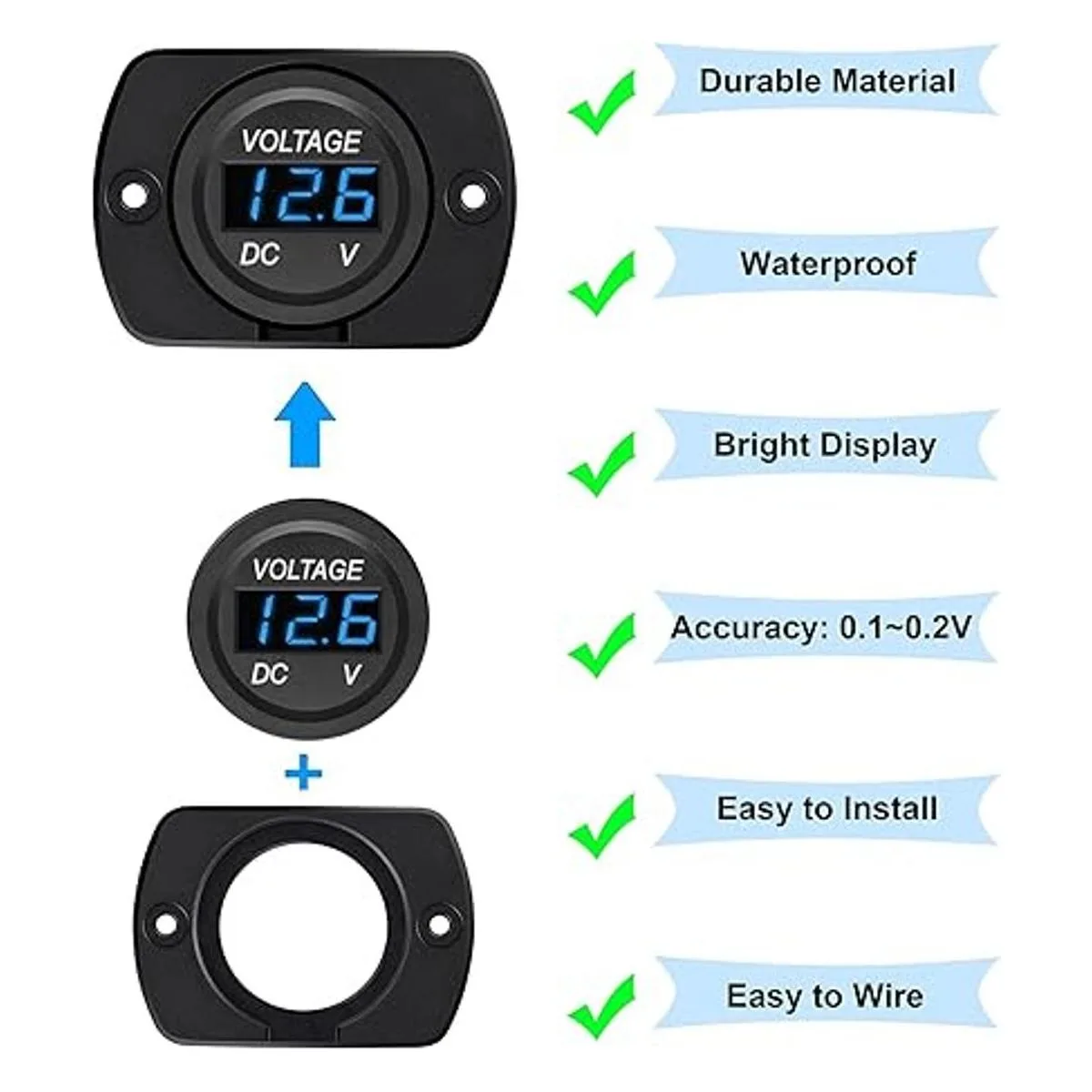 Precisión de medición: 0,1 V0,2 V, perfecto para coche/motocicleta/caravana/camión/barco/ATV/UTV, etc.