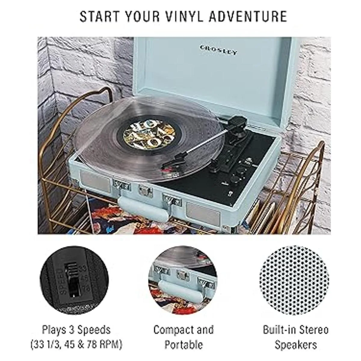 Crosley Tocadiscos vintage CR8005FTN Cruiser Plus de 3 velocidades con Bluetooth, tipo maletín turmalina