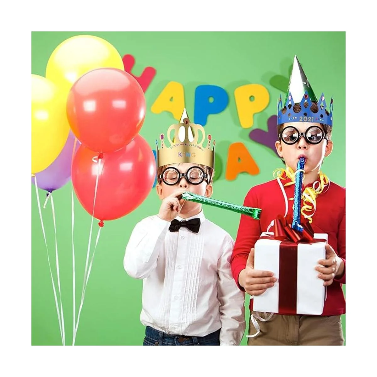 Bonito kit de fiesta de cumpleaños: el paquete viene con 20 sombreros de corona de papel en 5 estilos 4 para cada estilo, que son divertidos, fáciles de compartir y reemplazar, 421 calcomanías autoadhesivas de joyería y 1.368 calcomanías de letras y números para personalizar cada corona; puedes compartir diferentes sombreros de corona con amigos en la fiesta