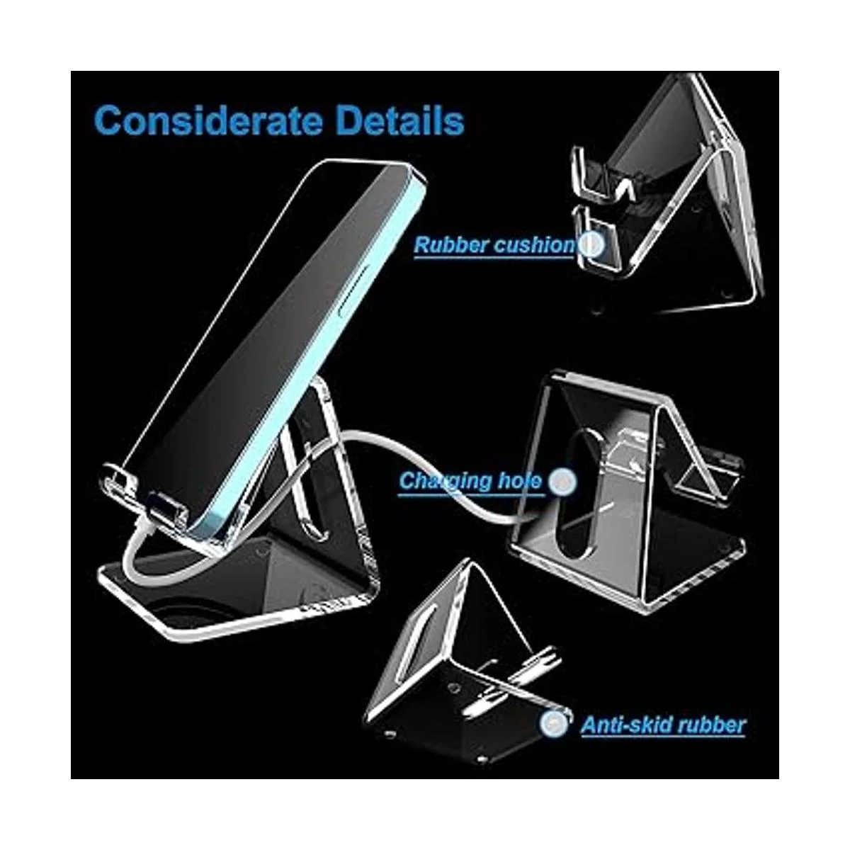 duradero y antideslizante: este soporte transparente para teléfono está hecho de panel acrílico de alta calidad de 0.157 in, sin rebabas afiladas del proceso de fabricación. los bordes elegantes hacen que este soporte para iphone se sienta muy bien al tacto, las almohadillas de goma protegen tu teléfono celular y la superficie del escritorio de arañazos.