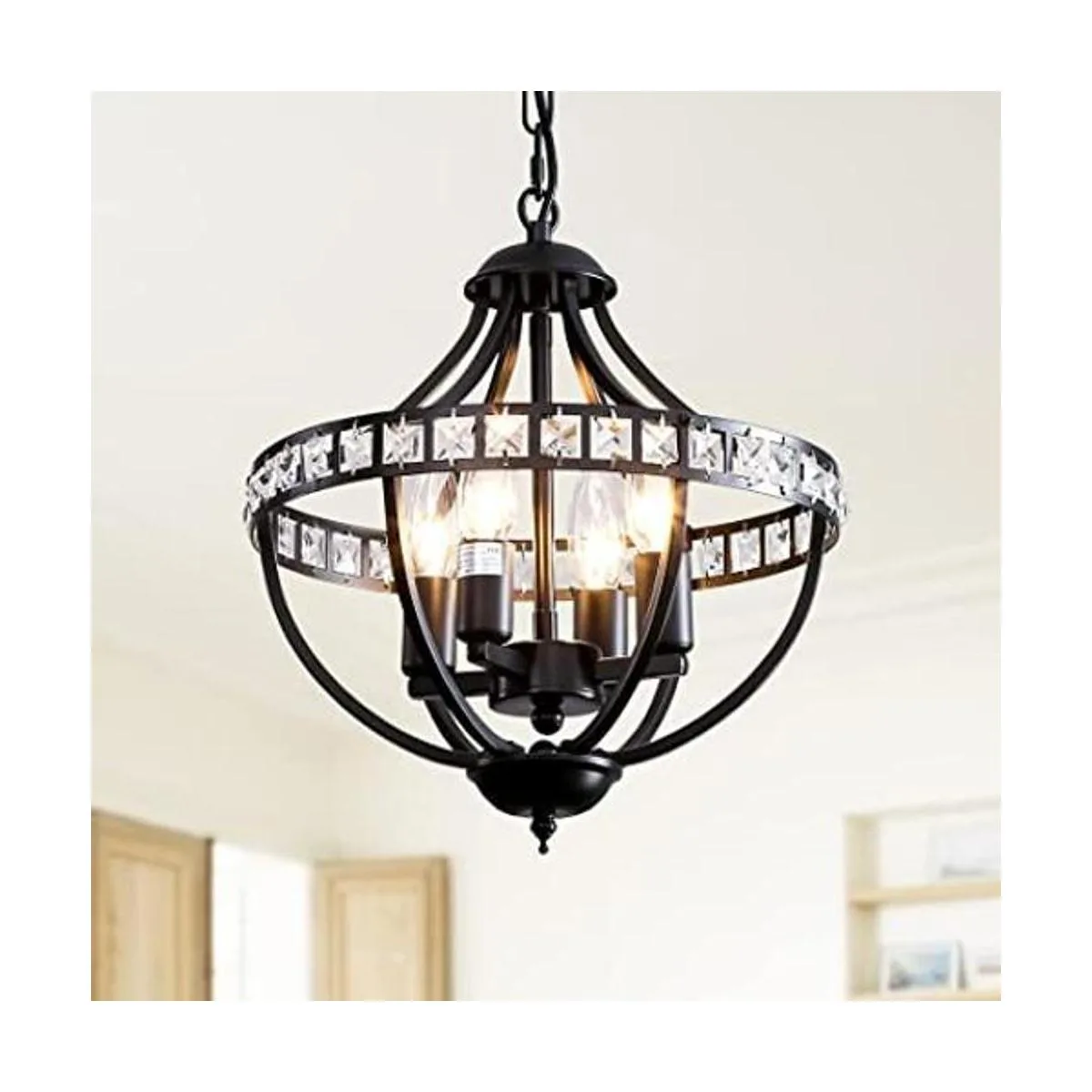 Crystal Chandelier: This 4Light black crystal chandelier is made of iron artisanal finish, features crystal tube is shiny, crystal home decor. Its the focal point of your home renovation, youll absolutely fall in love with it.features crystal tube is shiny, crystal home decor.