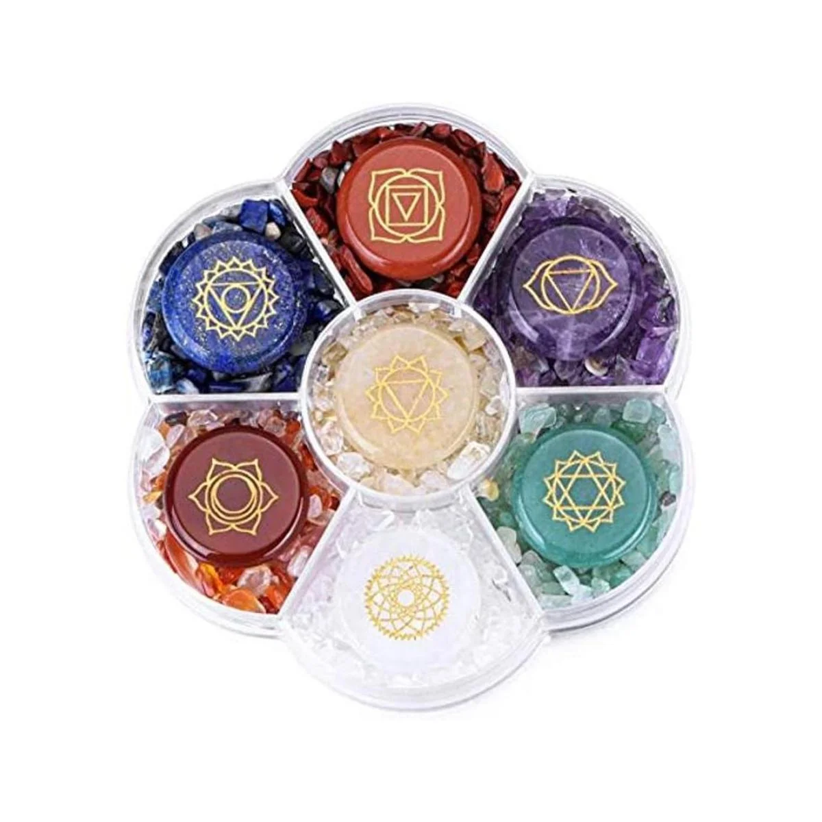 CrystalTears 7 piedras de cristal de chakras, piedras preciosas naturales de reiki curativas, con símbolo de chakra grabado, kit de piedra de chakra pulida para meditación, terapia de cristal, regalo para Navidad