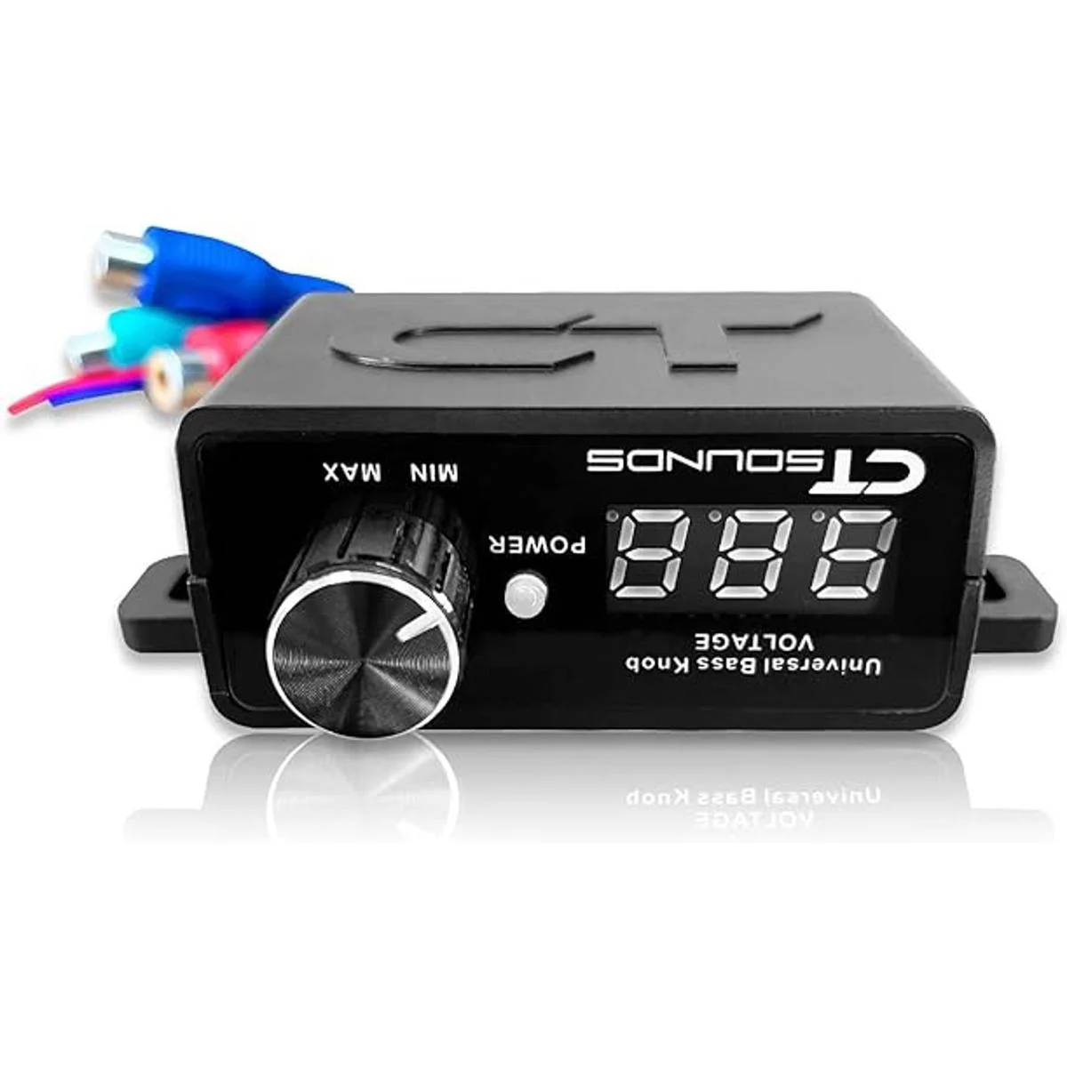 CT Sounds Pomo universal de graves, voltímetro digital, pantalla LED azul, control remoto de ganancia, interruptor de alimentación, duradero, encendido y apagado empujado para amplificador