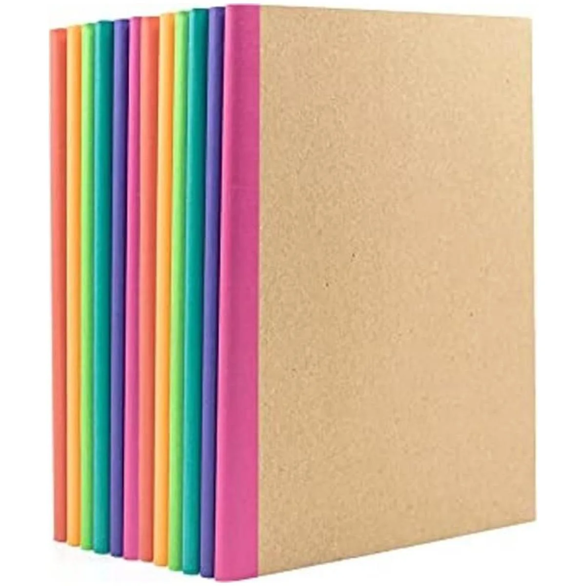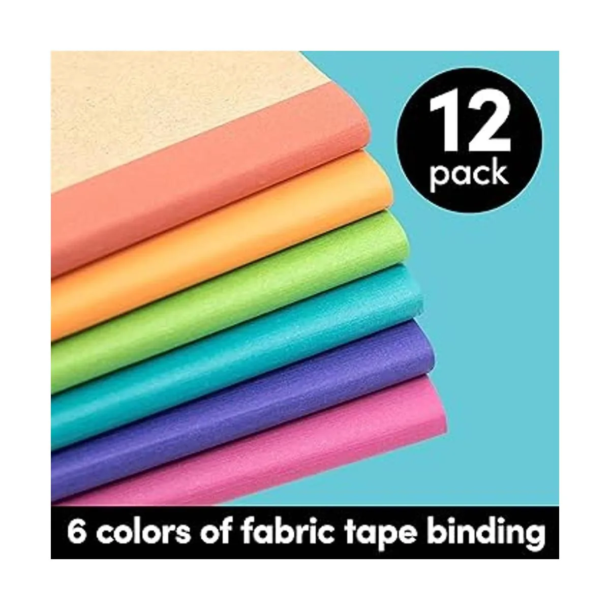 Fijaciones de colores brillantes: rojo, naranja, verde lima, turquesa azulado, azul, rosa fuerte magenta. Mantén tus proyectos, clases y pensamientos organizados por colores. Cada cuaderno tiene una encuadernación de cinta con textura de lino de colores brillantes y una cubierta de papel kraft en blanco.