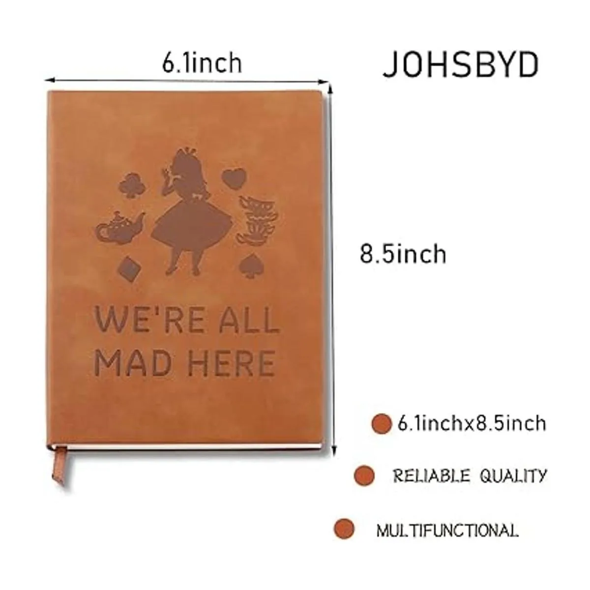Cuaderno de cuero de Alicia en el país de las maravillas Always Remember Youre Braver Than You Believe, cuaderno de cuero para fanáticos de Alice, regalos de cumpleaños para hija, graduación, regalos de Navidad para sus amigas todos estamos locos aquí