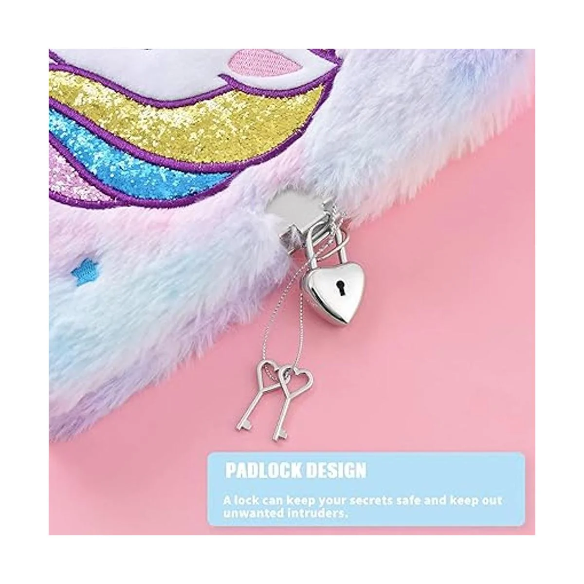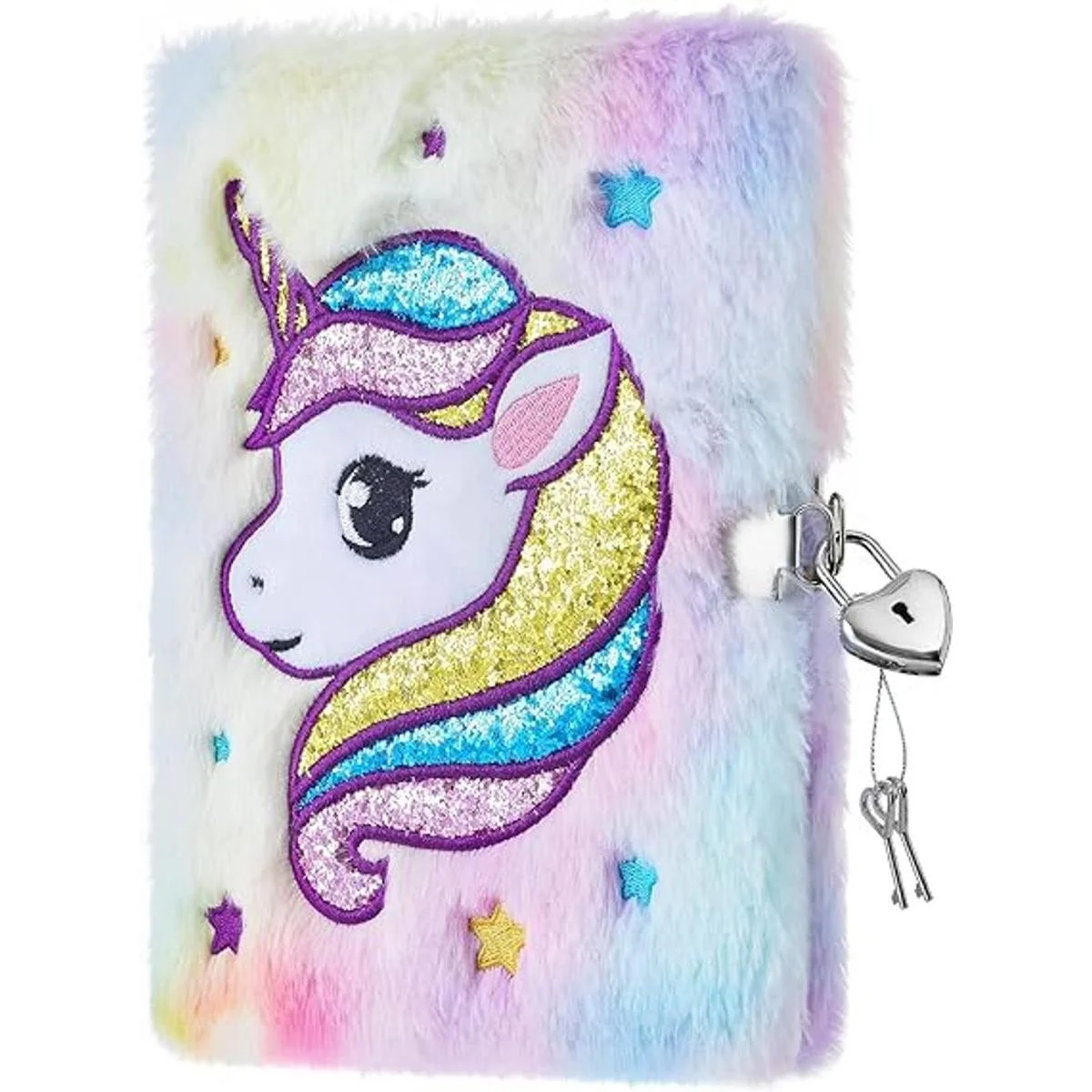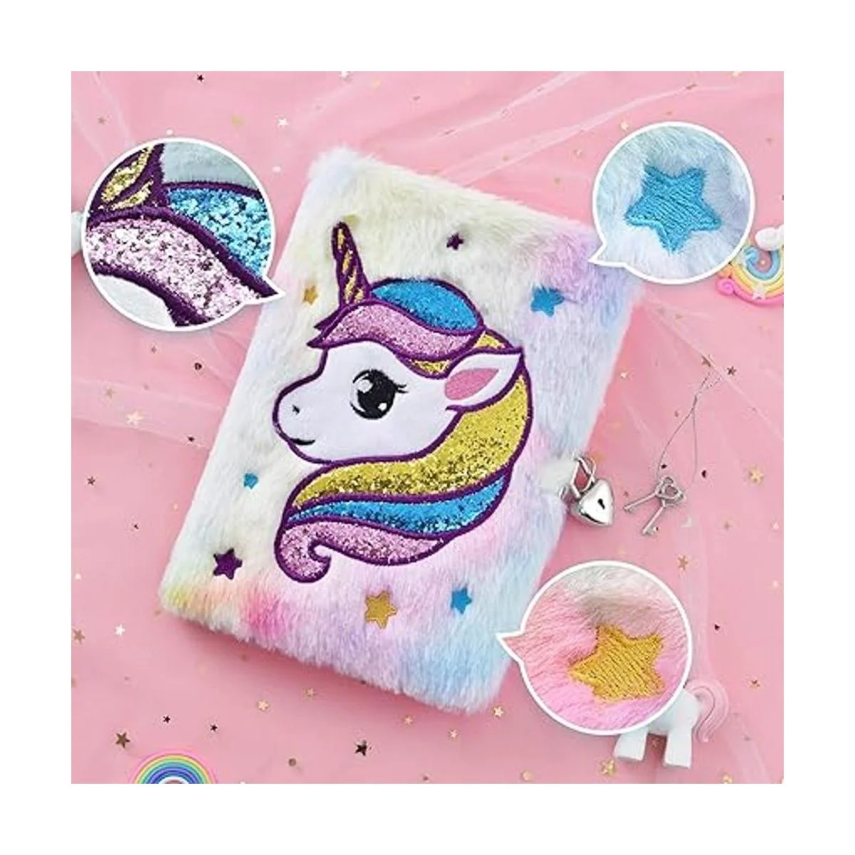 Cuaderno de unicornio de felpa, diario brillante, diario de unicornio para niñas, regalo de bordado escolar, oficina, viajes, notas de tapa dura, cuaderno A5, cuaderno de escritura y dibujo con cerraduras y llaves