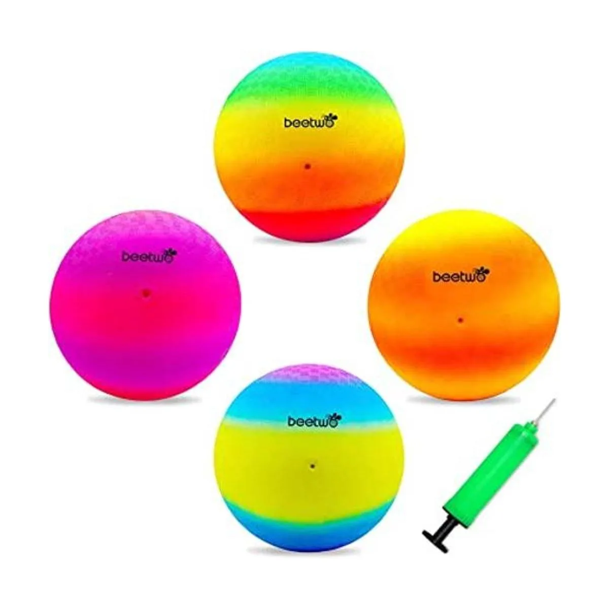 Juego de cuatro bolas cuadradas: tu pedido incluye 4 bolas cuadradas de goma resistentes de 8.5 pulgadas multicolor/arcoíris y una bomba de mano. Ideal para niños de más de 3 años en interiores o exteriores