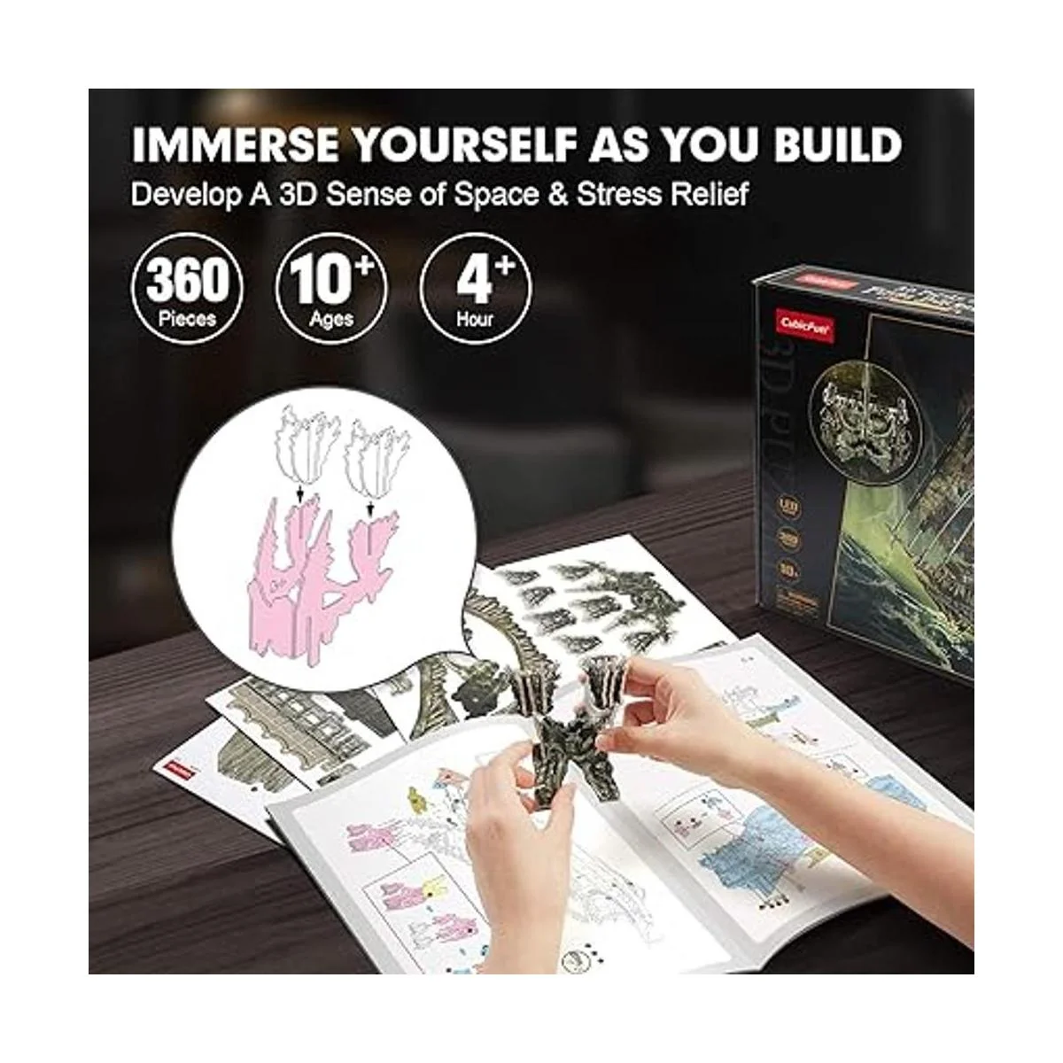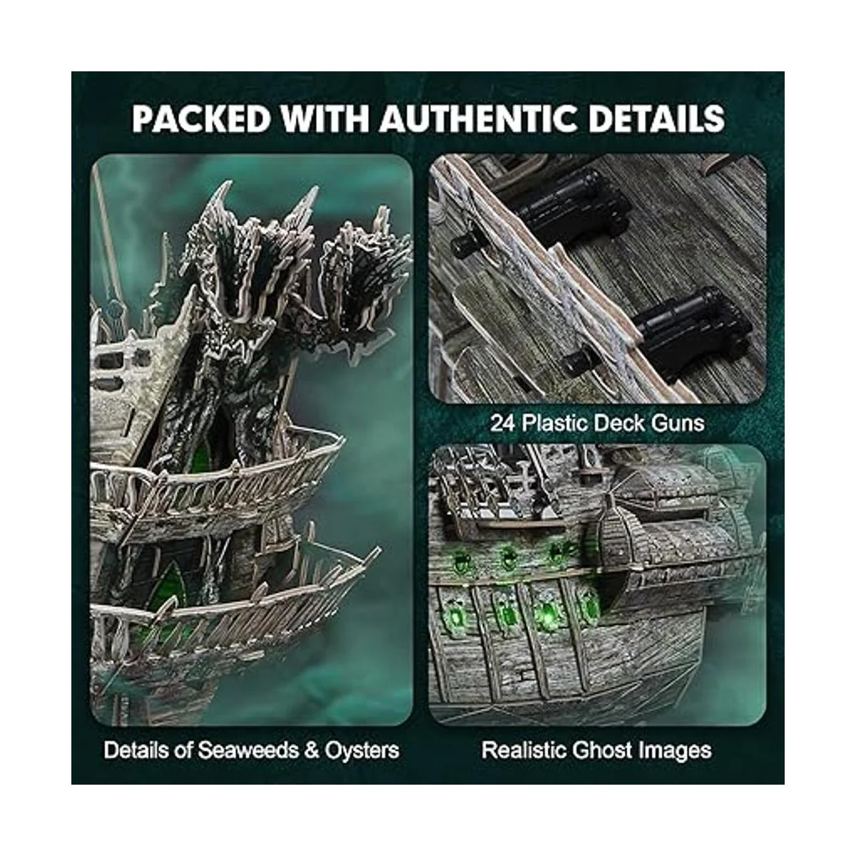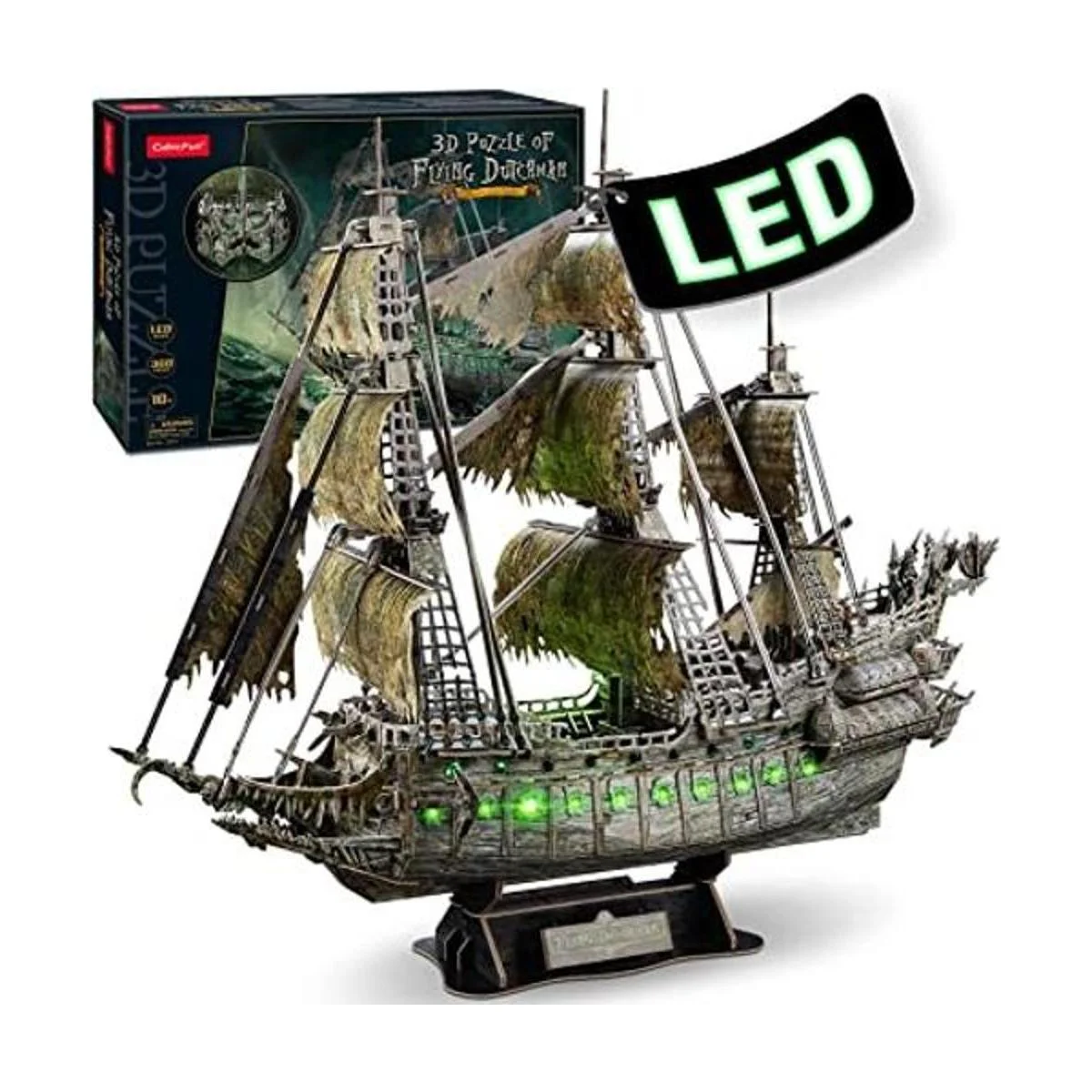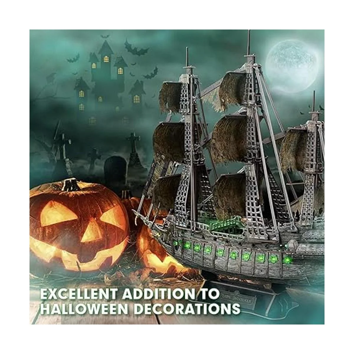 CubicFun 3D Puzzles para adultos LED verde volador holandés pirata kit modelo, iluminación fantasma barco 3D rompecabezas familia puzzle, decoración de escritorio regalos de cumpleaños para mujeres hombres, 360 piezas