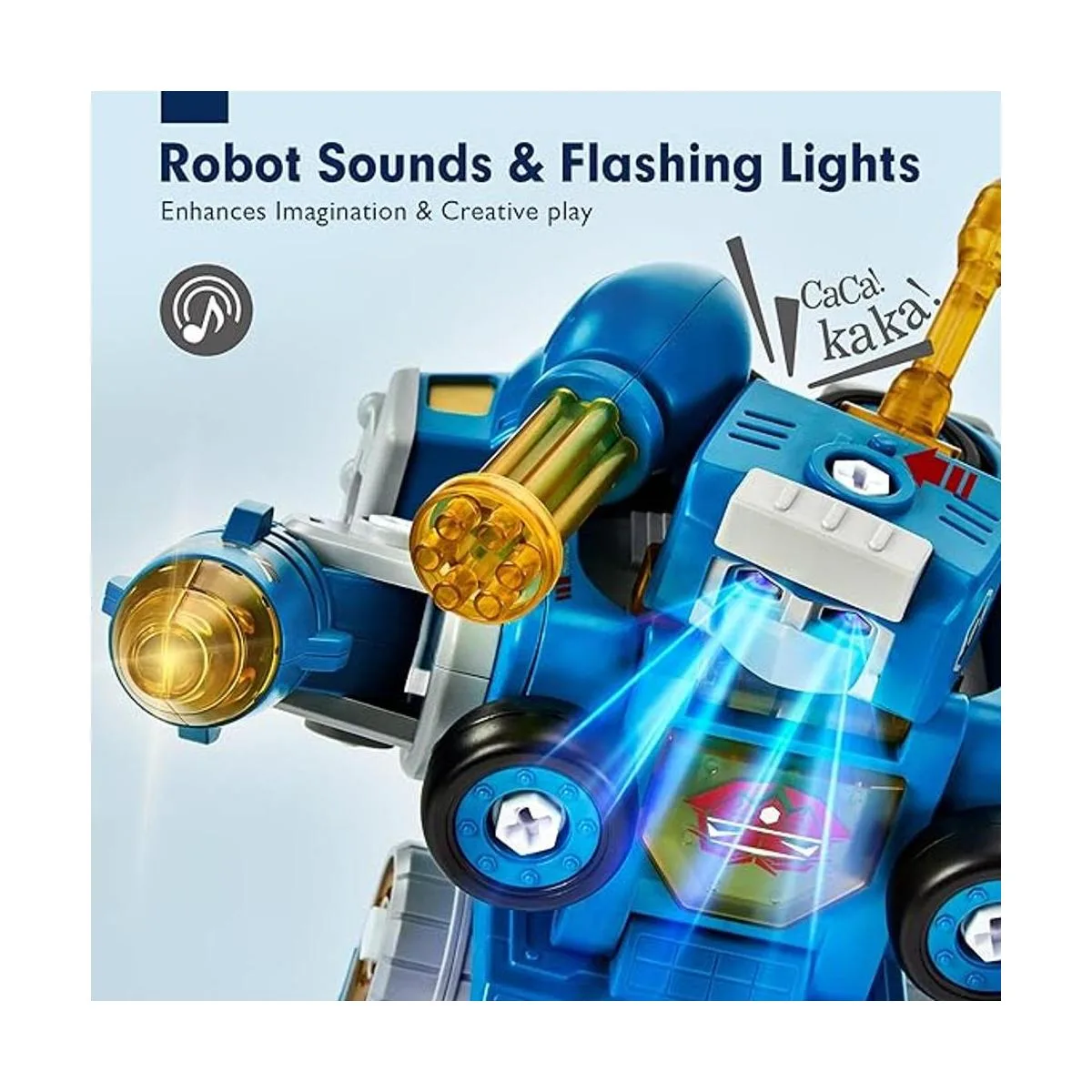 Los sonidos del robot y las luces intermitentes atraen a los niños Una vez completado el robot, hay un botón en la parte superior de la cabeza del robot que los niños pueden presionar y activar las luces intermitentes y sonidos realistas de los robots, estos juguetes STEM atraen a los niños a construir y mejora la imaginación y el juego creativo. Además, todos los coches tienen ruedas móviles para que los niños empujen y vayan. Simplemente empuja los juguetes del coche hacia adelante ligeramente y luego irá por sí mismo y costa para bastante una larga distancia.
