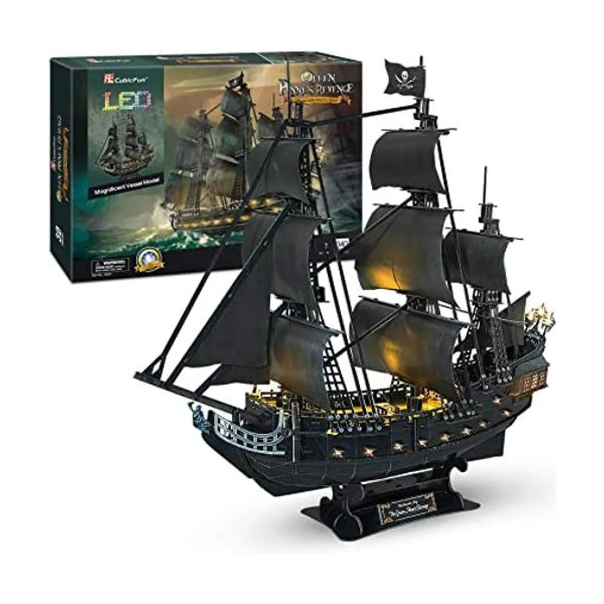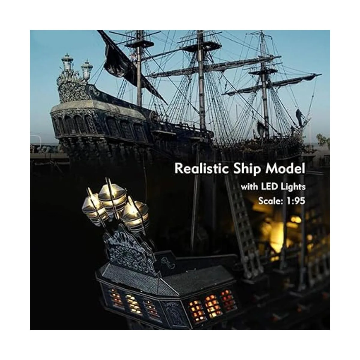 Apariencia realista y modelo a escala: la venganza de la Reina Ana a escala 1/95. Tamaño del modelo incorporado: 28.6 x 13.5 x 27.2 pulgadas. Monta tu propio barco pirata para disfrutar de un maravilloso viaje de la antigua aventura de piratas.