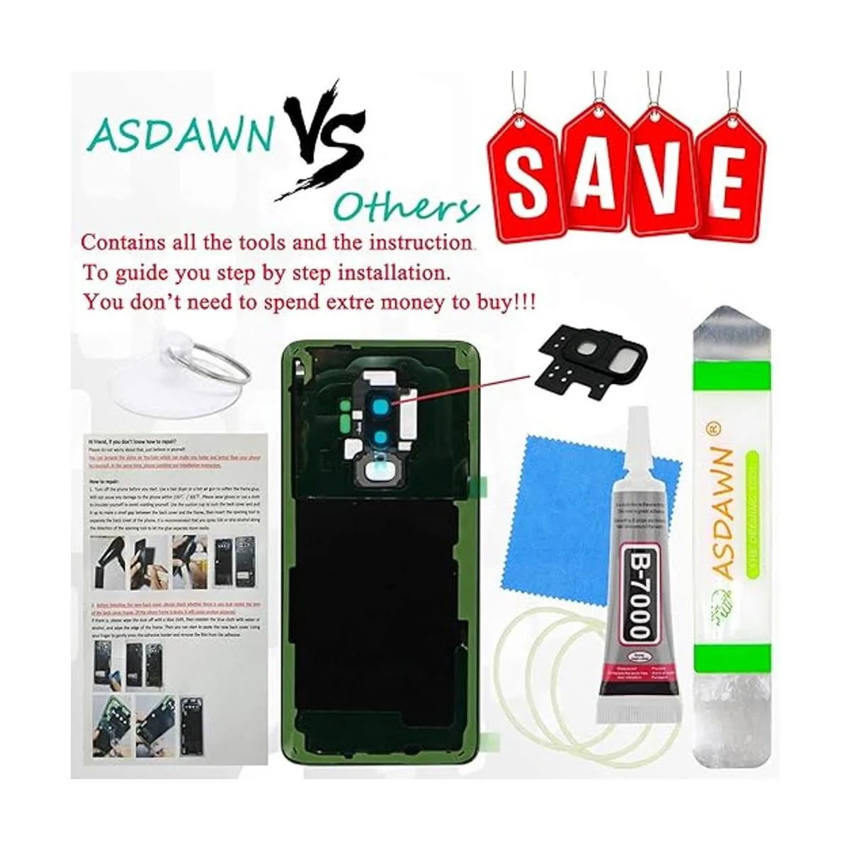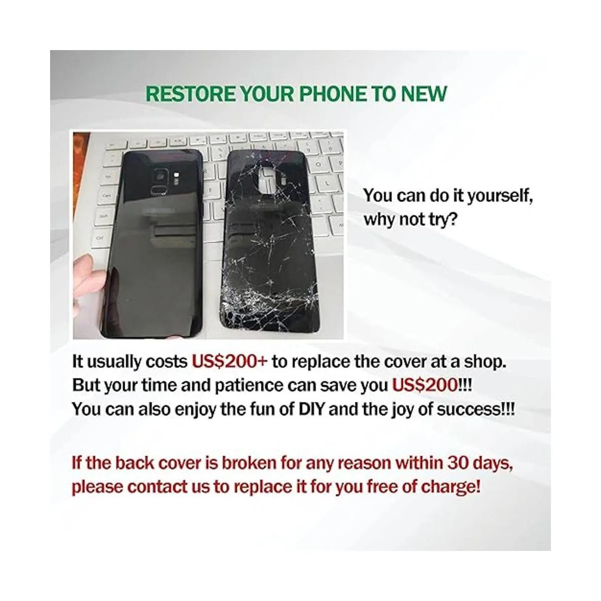 Fácil instalación y ahorra dinero Reemplazo de ajuste 100 perfecto. La carcasa de la puerta trasera de cristal para Galaxy S9 Plus viene con lente de marco de cámara preinstalada, adhesivo preinstalado y kit de herramientas de reparación. El manual de instrucciones paso a paso está incluido para que puedas instalarlo fácilmente. Disfruta de la diversión del bricolaje. Ahorra dinero comprando nuevas piezas de reparación de puertas de carcasa de vidrio para Galaxy S9 y haciendo la reparación en casa Restaura el dispositivo de nuevo a nuevo