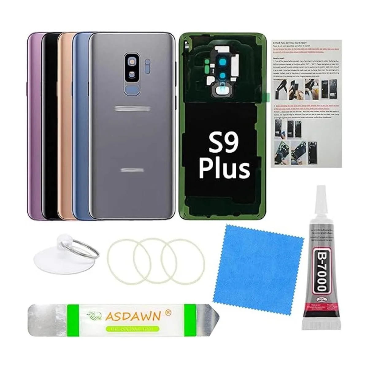 Cubierta de vidrio trasera para Galaxy S9 con lente de cámara preinstalada todo el adhesivo manual de instalación kit de herramientas de reparación para Samsung Galaxy S9 Plus SMG965 todos los portadores gris titanio