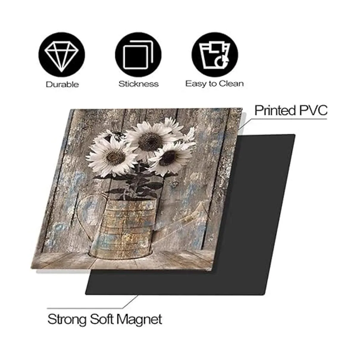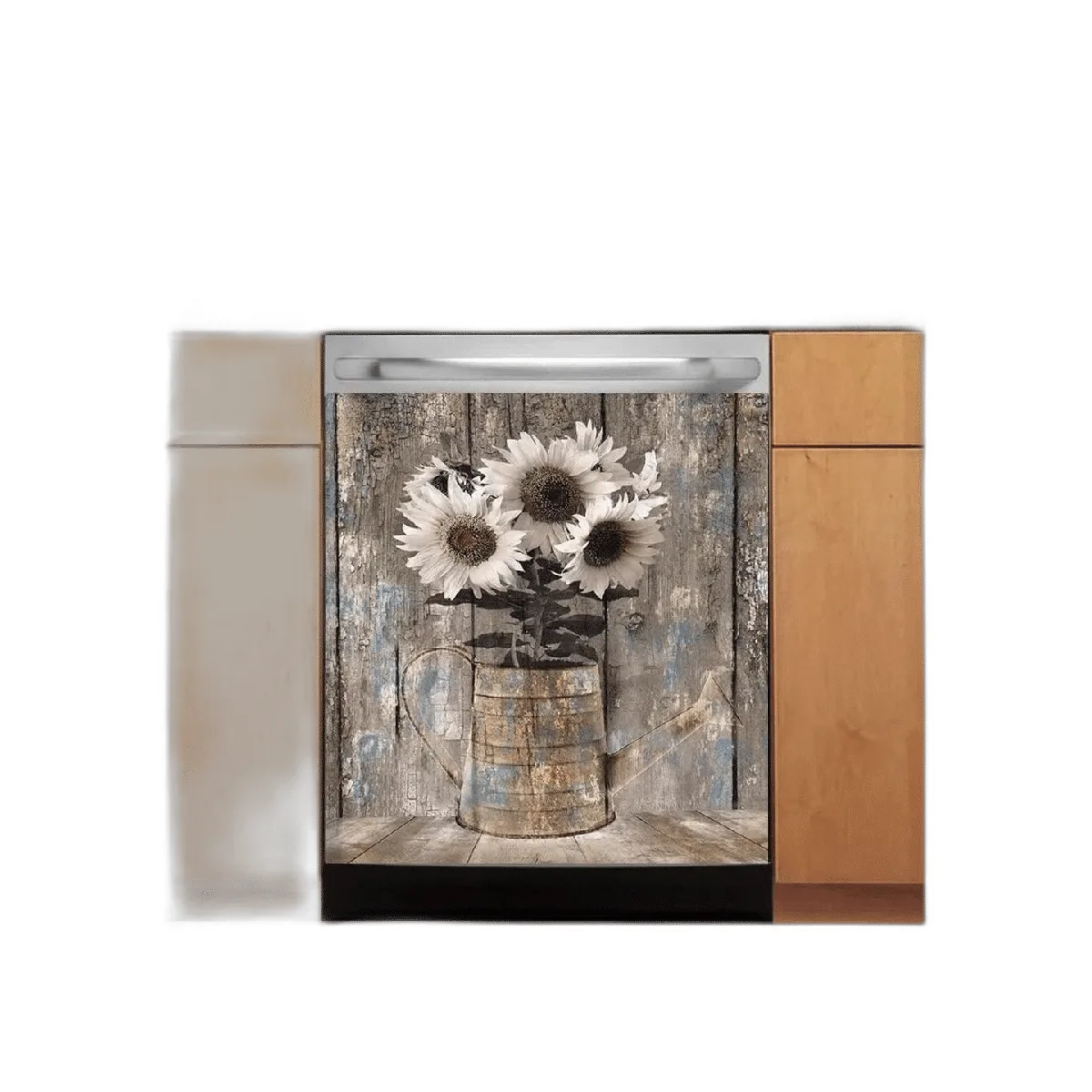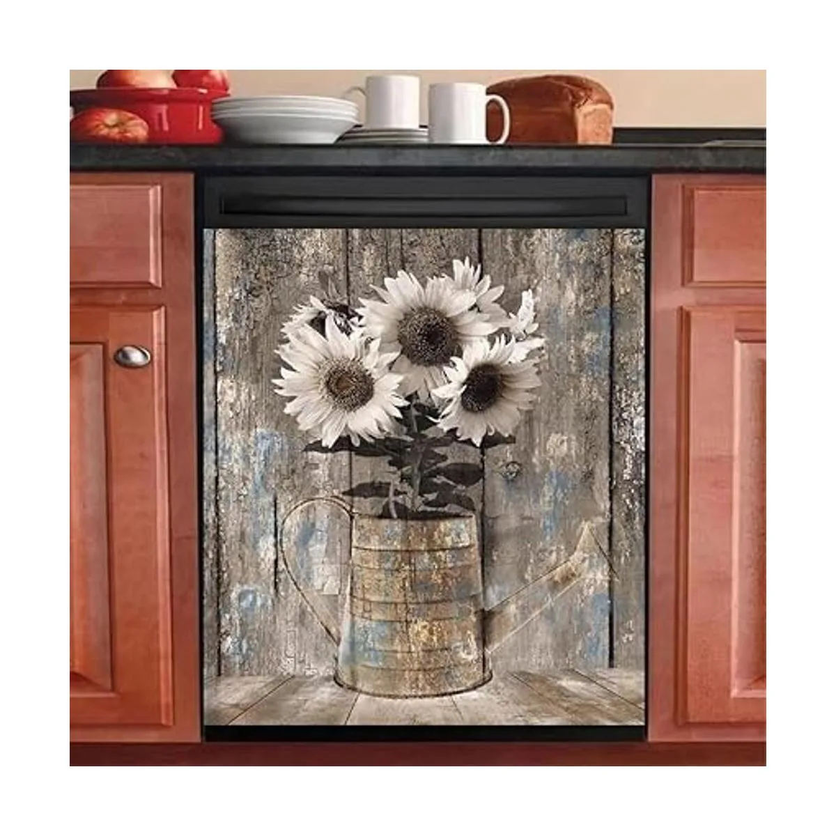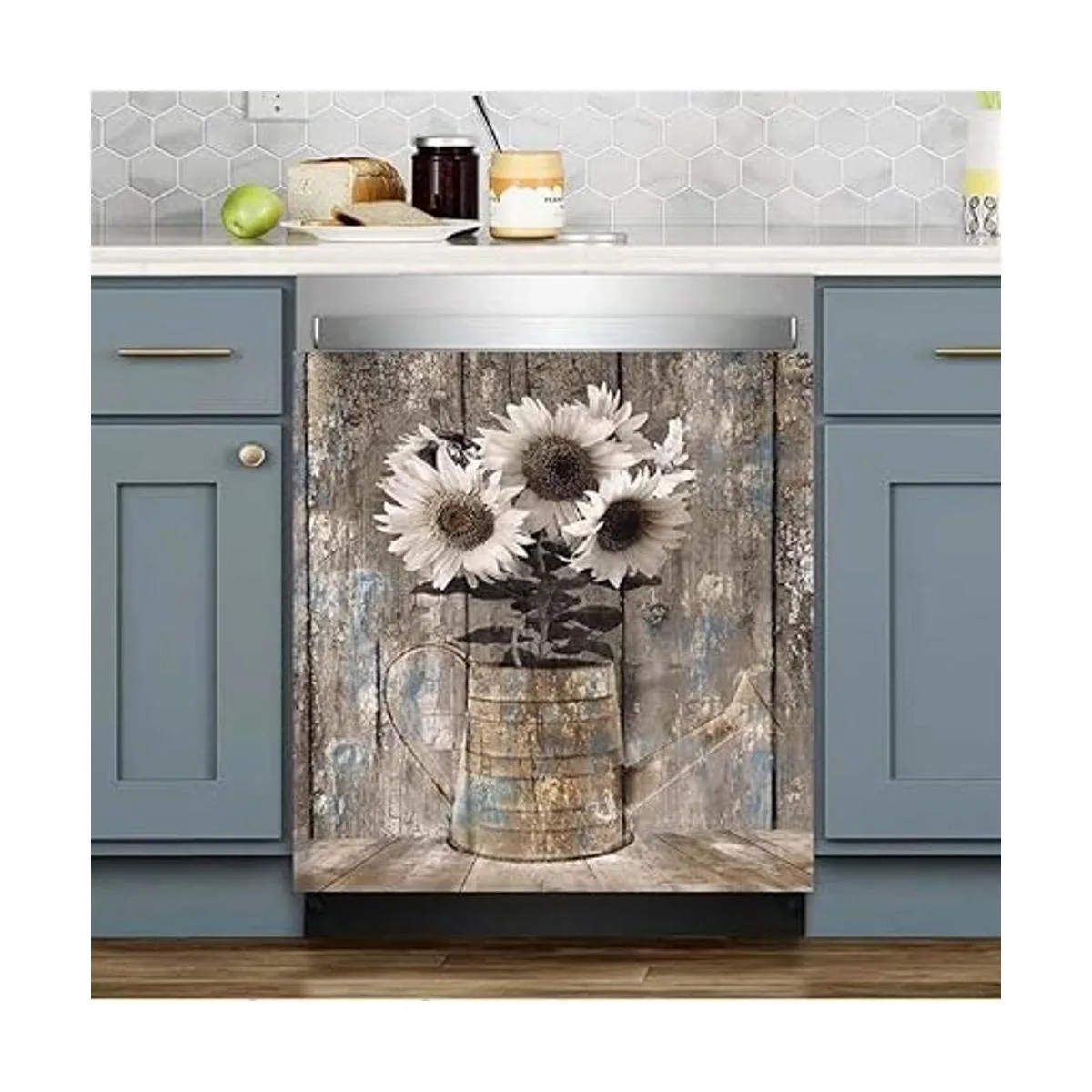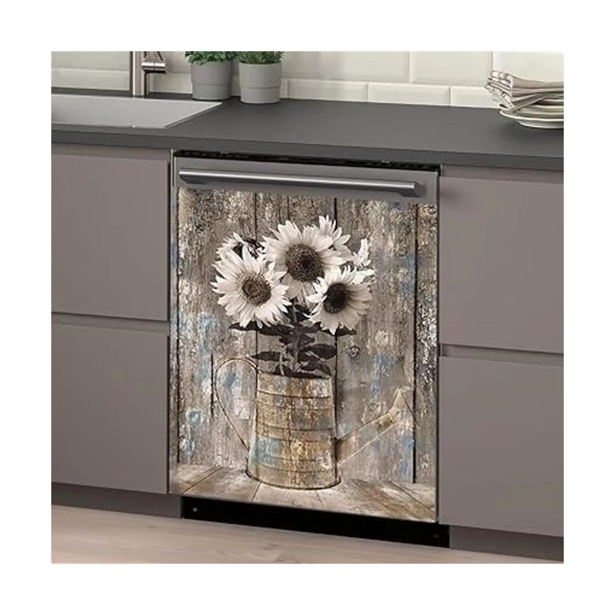 Cubierta magnética de madera vintage para lavavajillas para puerta delantera, imán de nevera de madera rústica para decoración de girasol, panel magnético para lavavajillas de madera campestre para nevera, electrodoméstico, 23 x 26 pulgadas