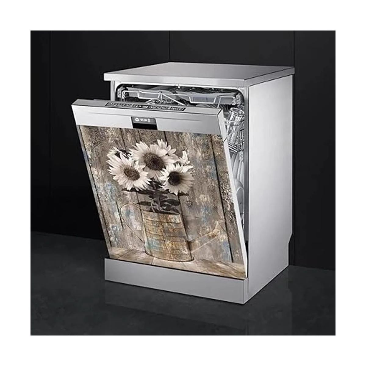 Tamaño: pegatinas magnéticas de madera de girasol para lavavajillas con dos tamaños: S: 23 pulgadas de ancho x 17 pulgadas de alto, 23 pulgadas de ancho x 26 pulgadas de alto. Fácilmente recortable para adaptarse a tus lavavajillas. La cubierta de acabado de lavavajillas se ajusta a medida y pega. Se adapta a cualquier aparato de metal.