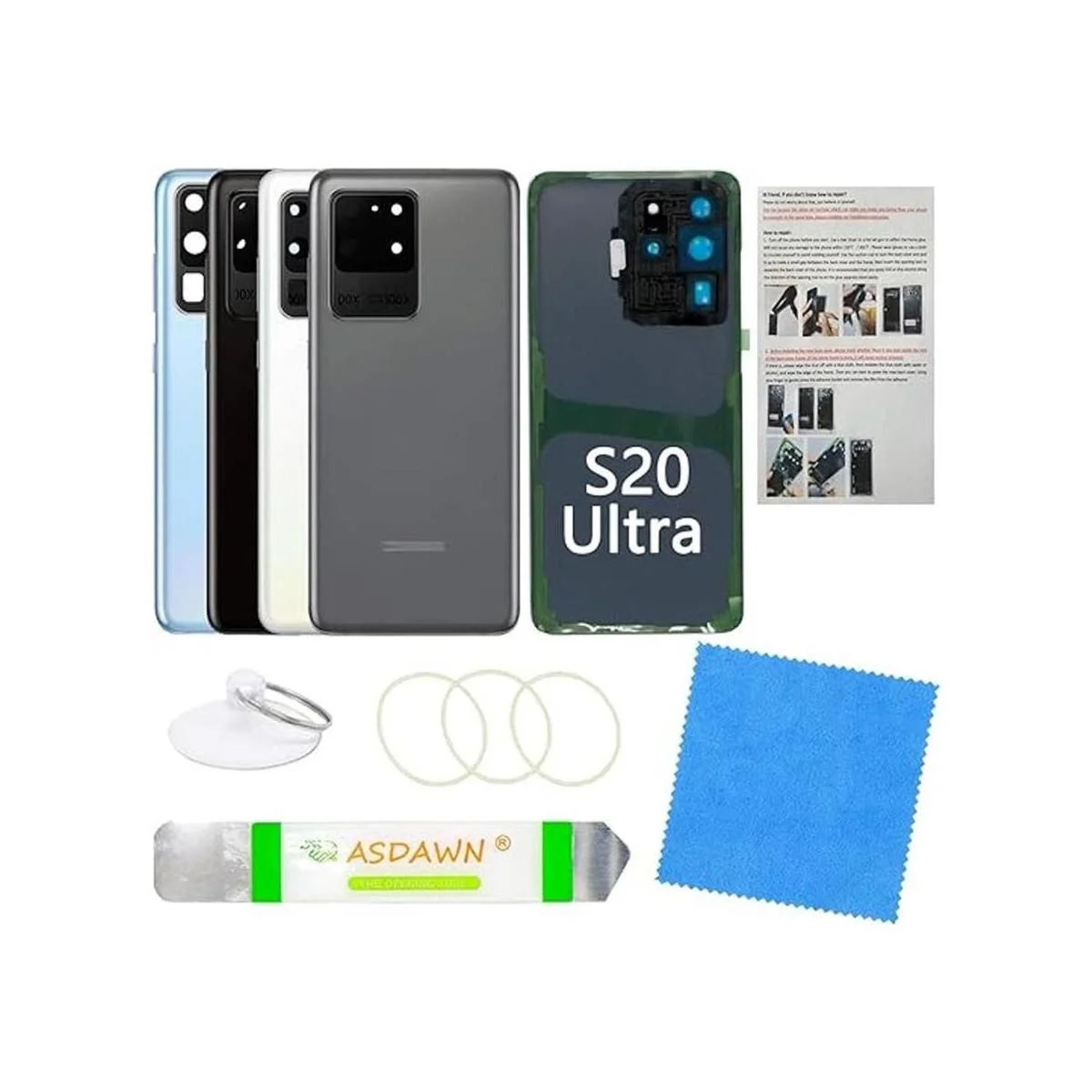 Cubierta trasera de vidrio para Galaxy S20 Ultra con todo el adhesivolente de cámara preinstaladamanual de instalación herramientas para Samsung Galaxy S20 Ultra 5G SMG988 All Carriers gris cósmico