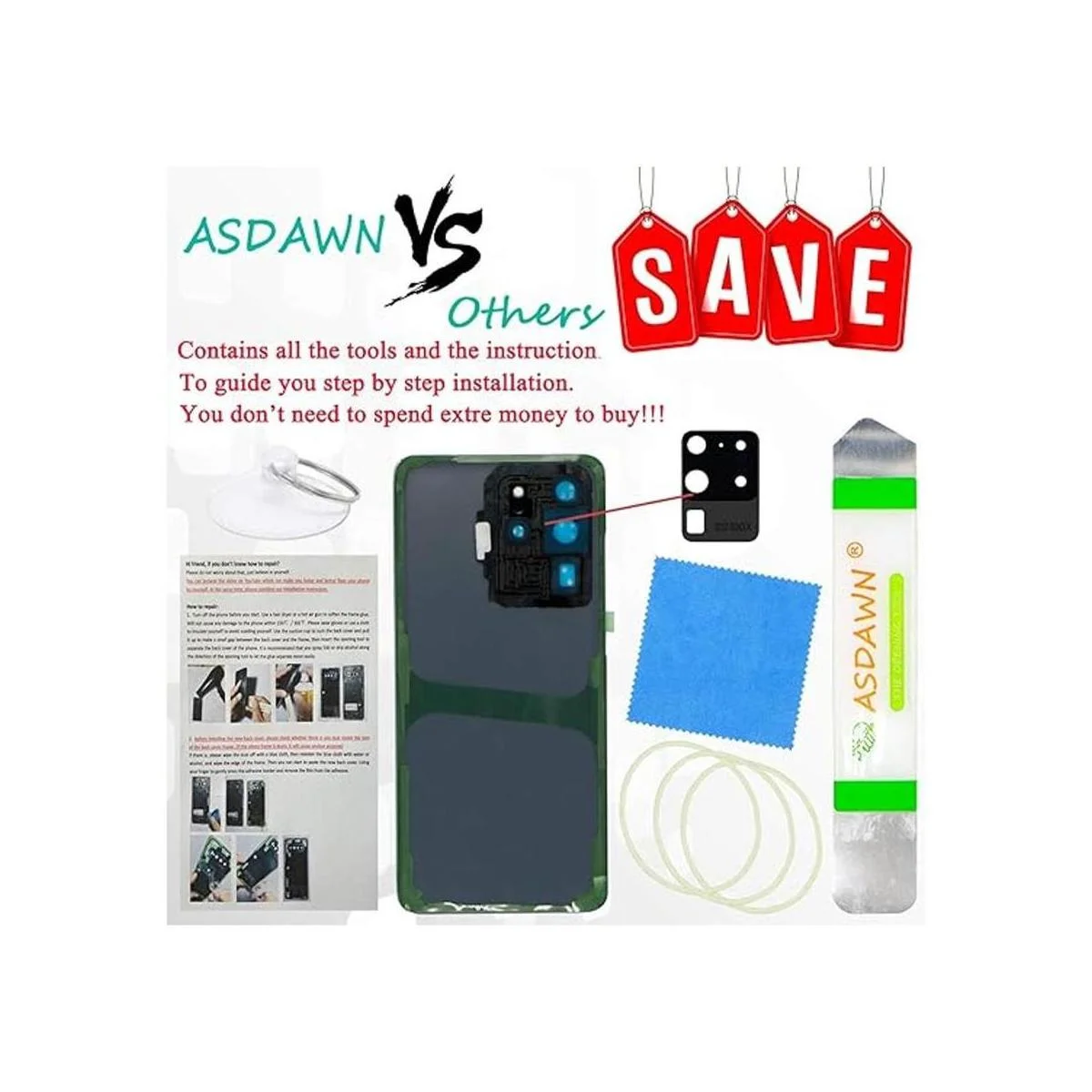 Fácil instalación y ahorra dinero Reemplazo de ajuste 100 perfecto. La carcasa de la puerta trasera de cristal para Galaxy S20 Ultra viene con lente de marco de cámara preinstalada, adhesivo preinstalado y kit de herramientas de reparación. El manual de instrucciones paso a paso está incluido para que puedas instalarlo fácilmente. Disfruta de la diversión del bricolaje. Ahorra dinero comprando nuevas piezas de reparación de puertas de carcasa de vidrio para Galaxy S20 Ultra y haciendo la reparación en casa Restaura el dispositivo de nuevo a nuevo