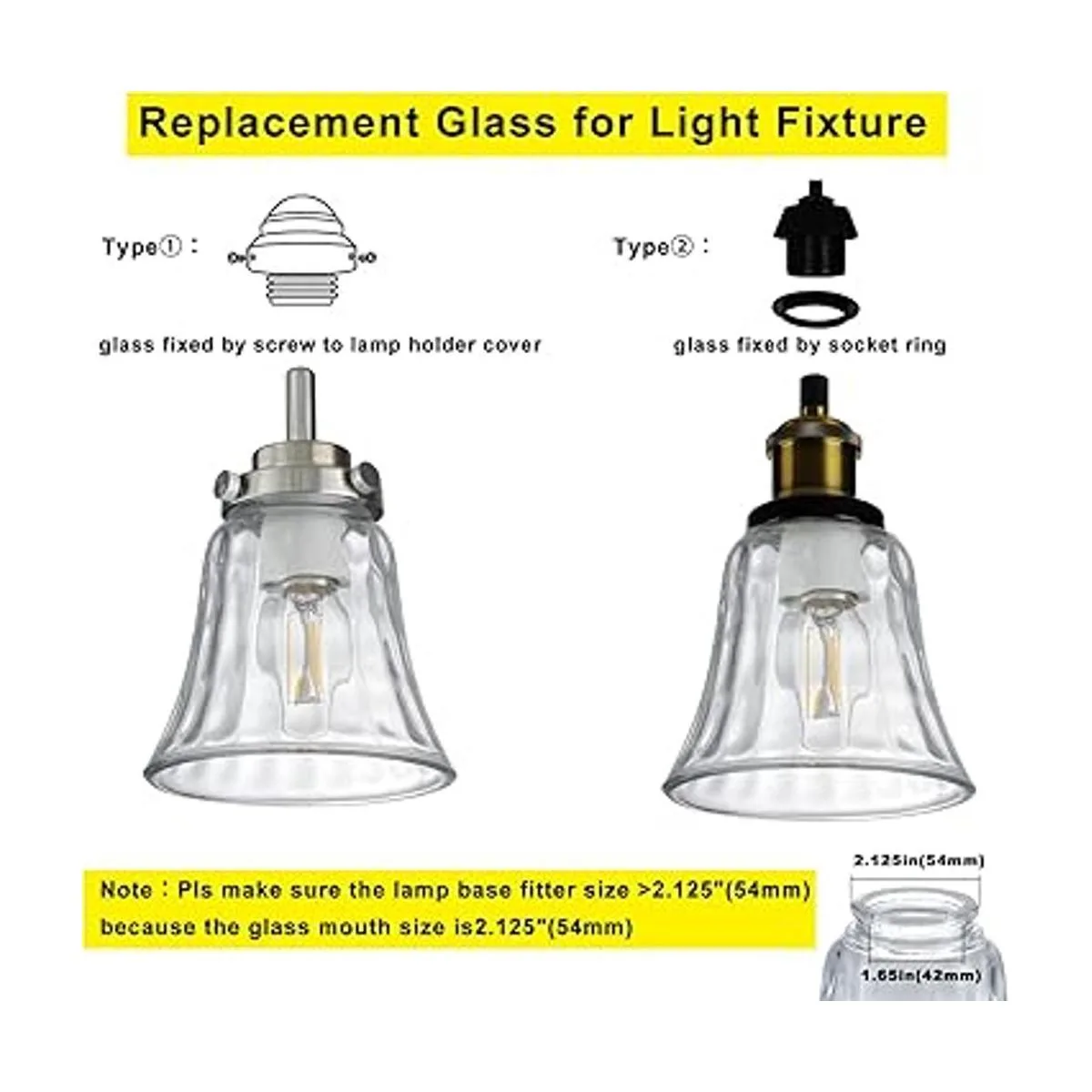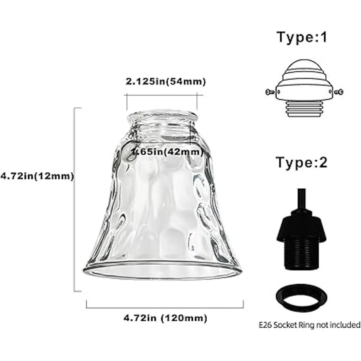 Reemplazo de pantalla de vidrio ondulado de agua clara: pantallas de cristal en forma de campana para lámpara de ventilador, paquete de 4, gruesas y bien empaquetadas, no se decolora fácilmente