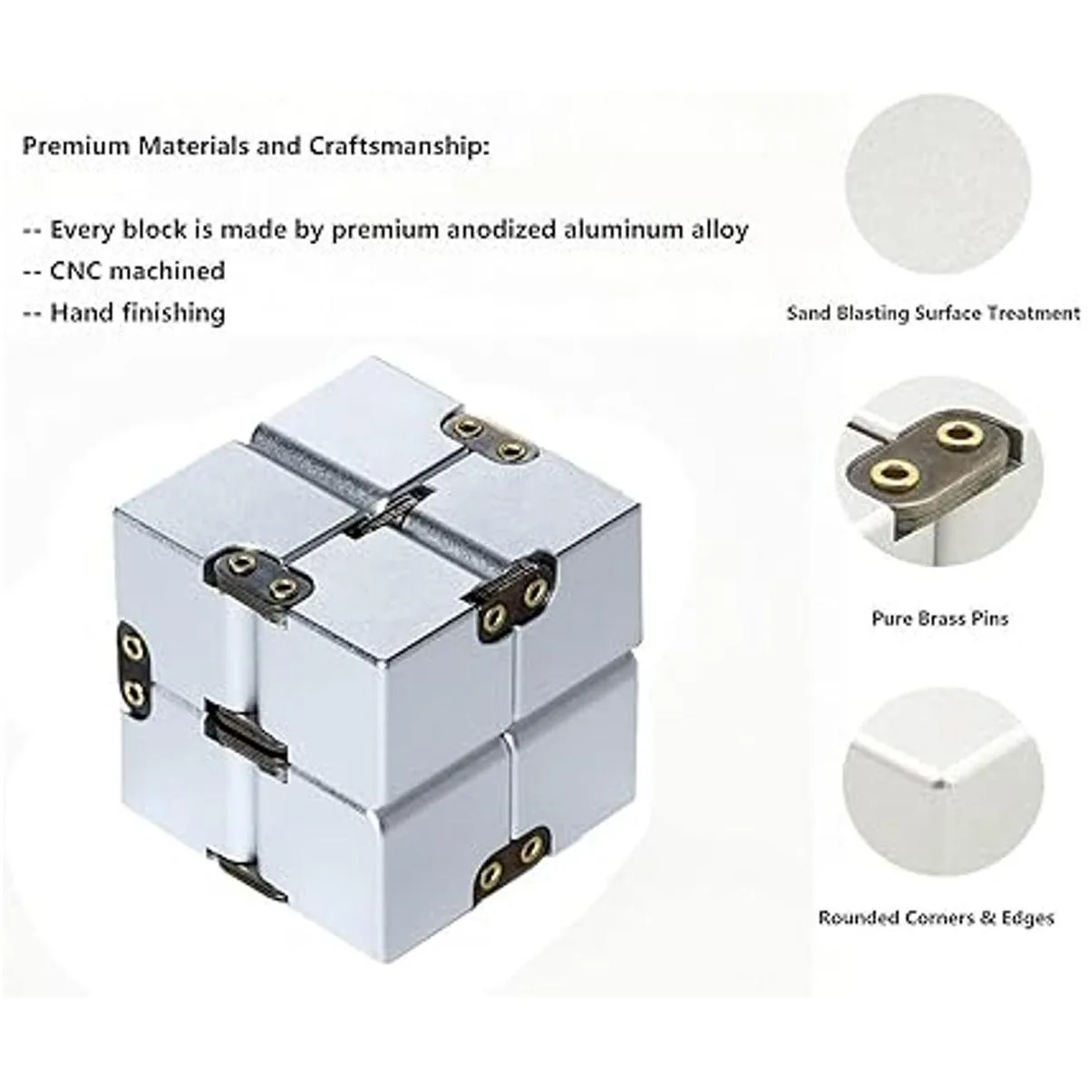 Cubo de aleación de aluminio Lifidea Cubo Infinito de metal Cubo Fidget 5 colores Juguete de escritorio y de mano con bonito estuche Cubo mágico Infinity para aliviar la ansiedad por estrés TDAH TOC para niños y adultos