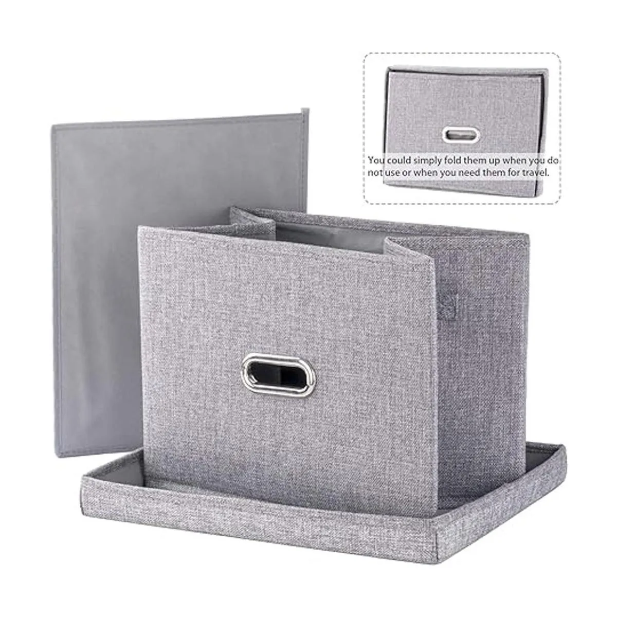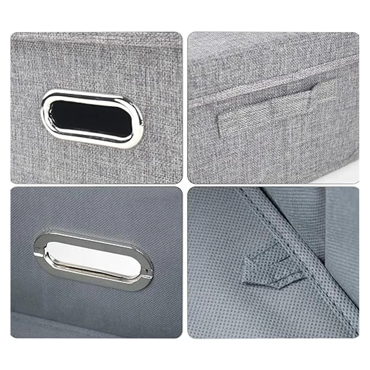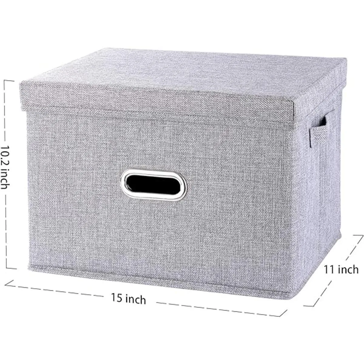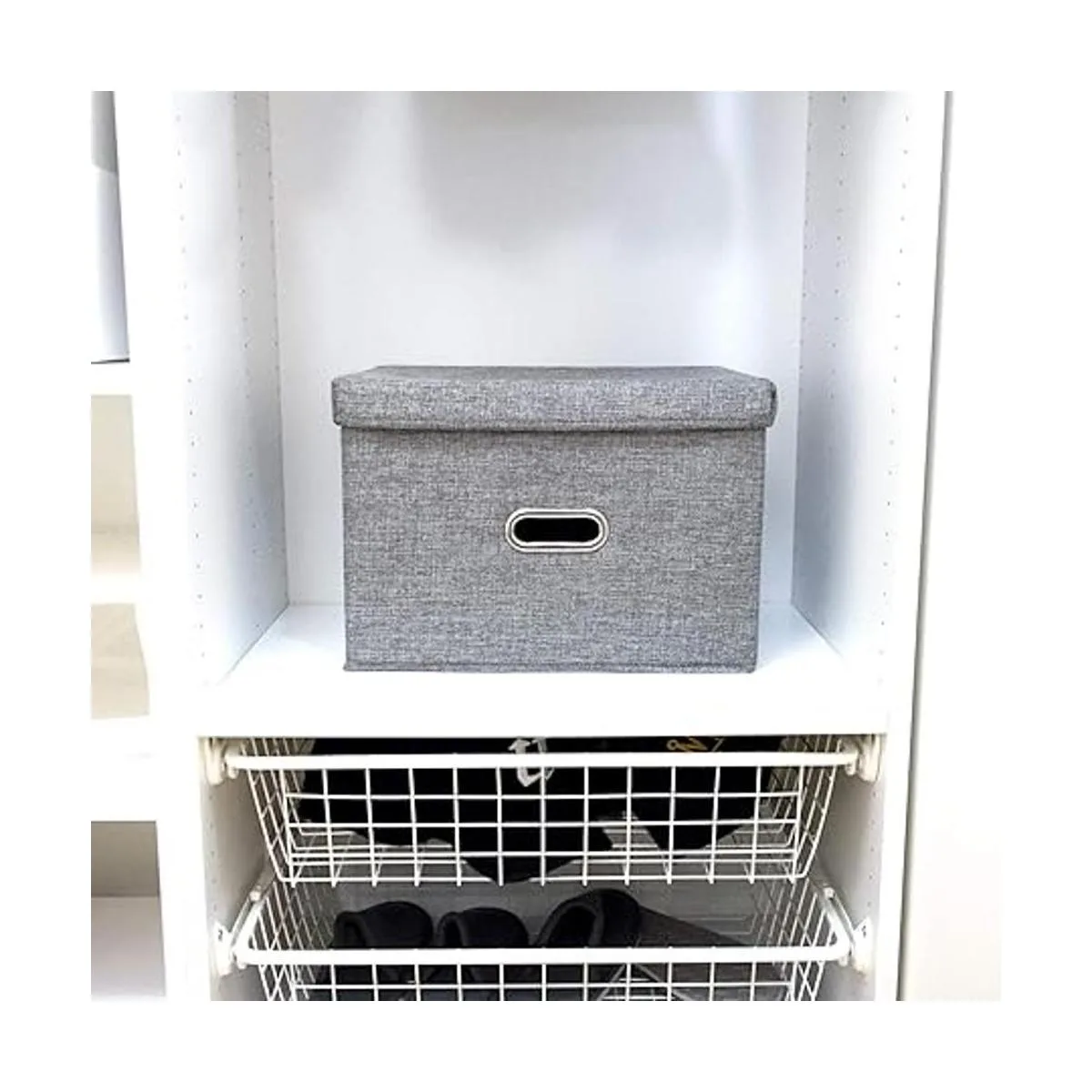Cubo de almacenamiento con tapa, cesta de tela con asas dobles, contenedor de almacenamiento de ropa de lino decorativo para armario, estantes, 15.0 x 11.0 x 10.2 in, color gris