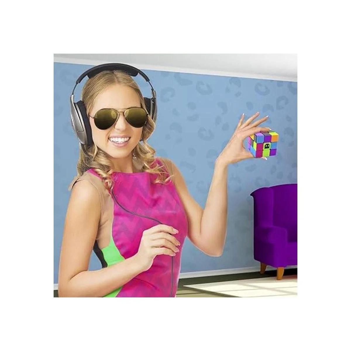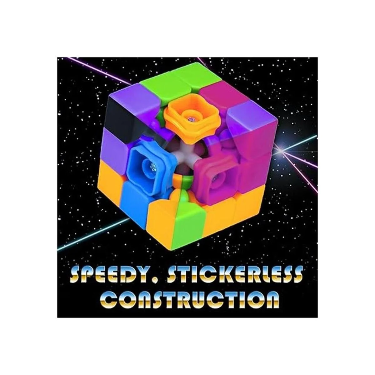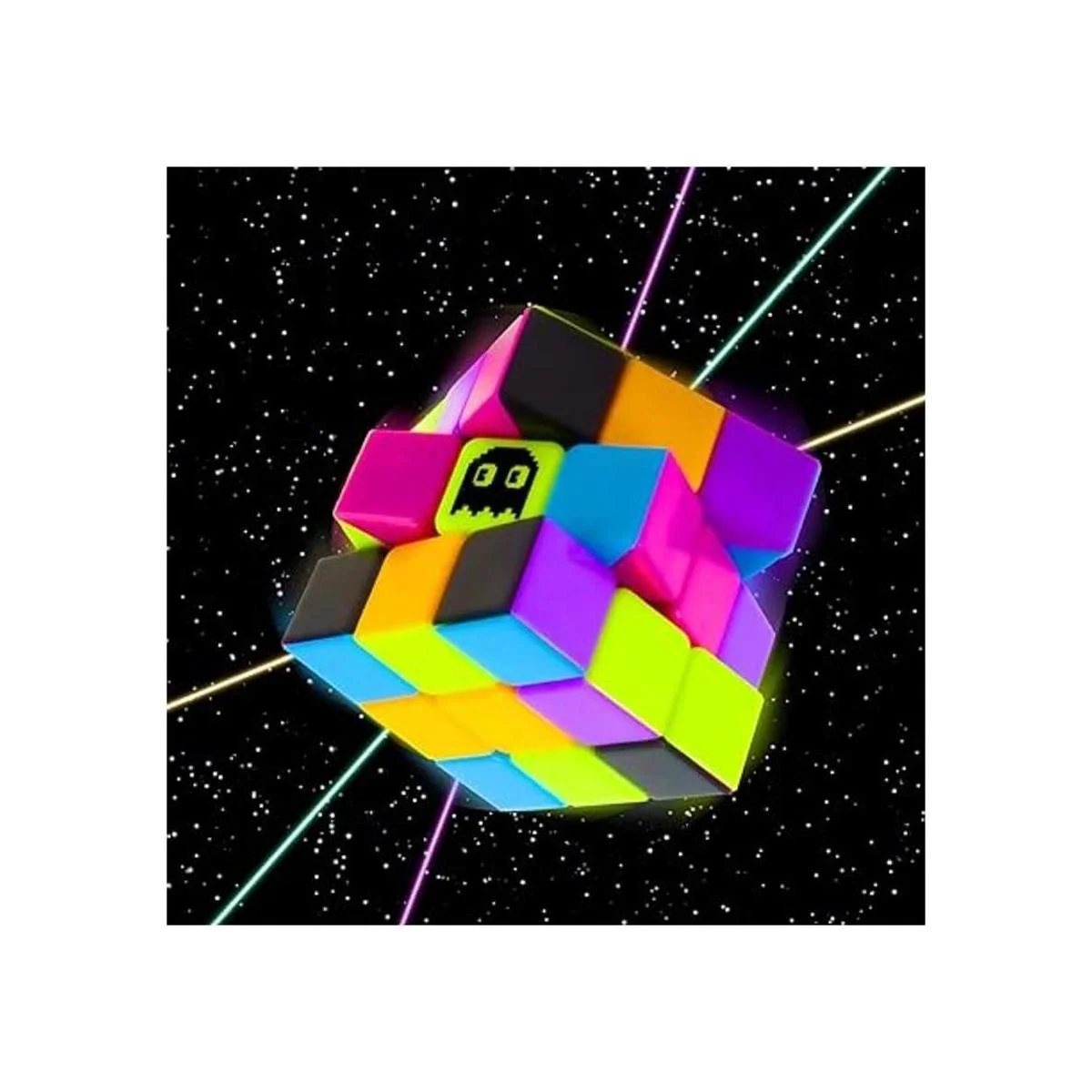 Cubo de Rubik Stickerless de neón modelo de los 80 de 3 x 3 diseñado para una resolución veloz por Brybelly