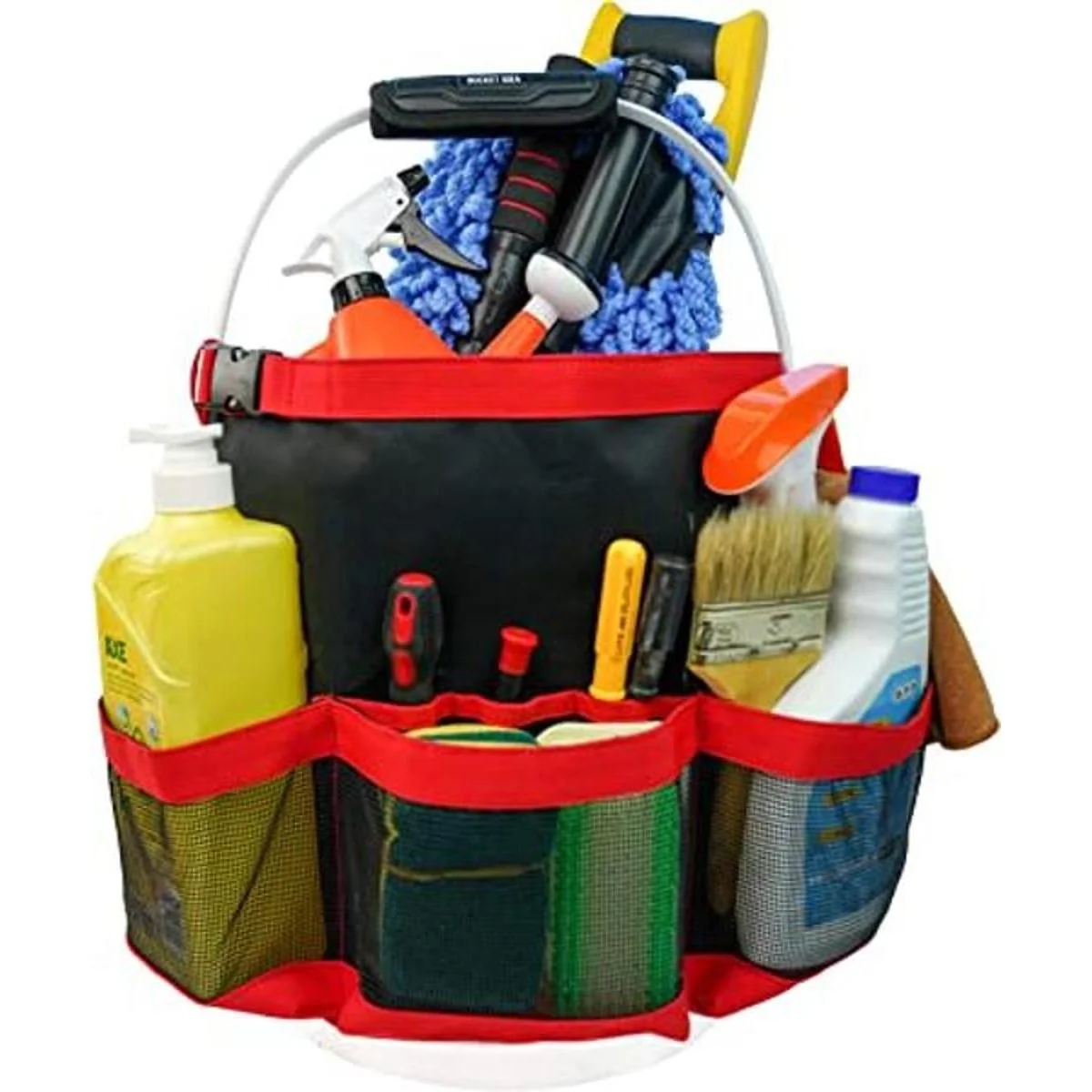 Cubo Idea Organizador de herramientas de lavado de cubos para herramientas de jardín, apto para cubo de 3.5 a 5 galones rojo