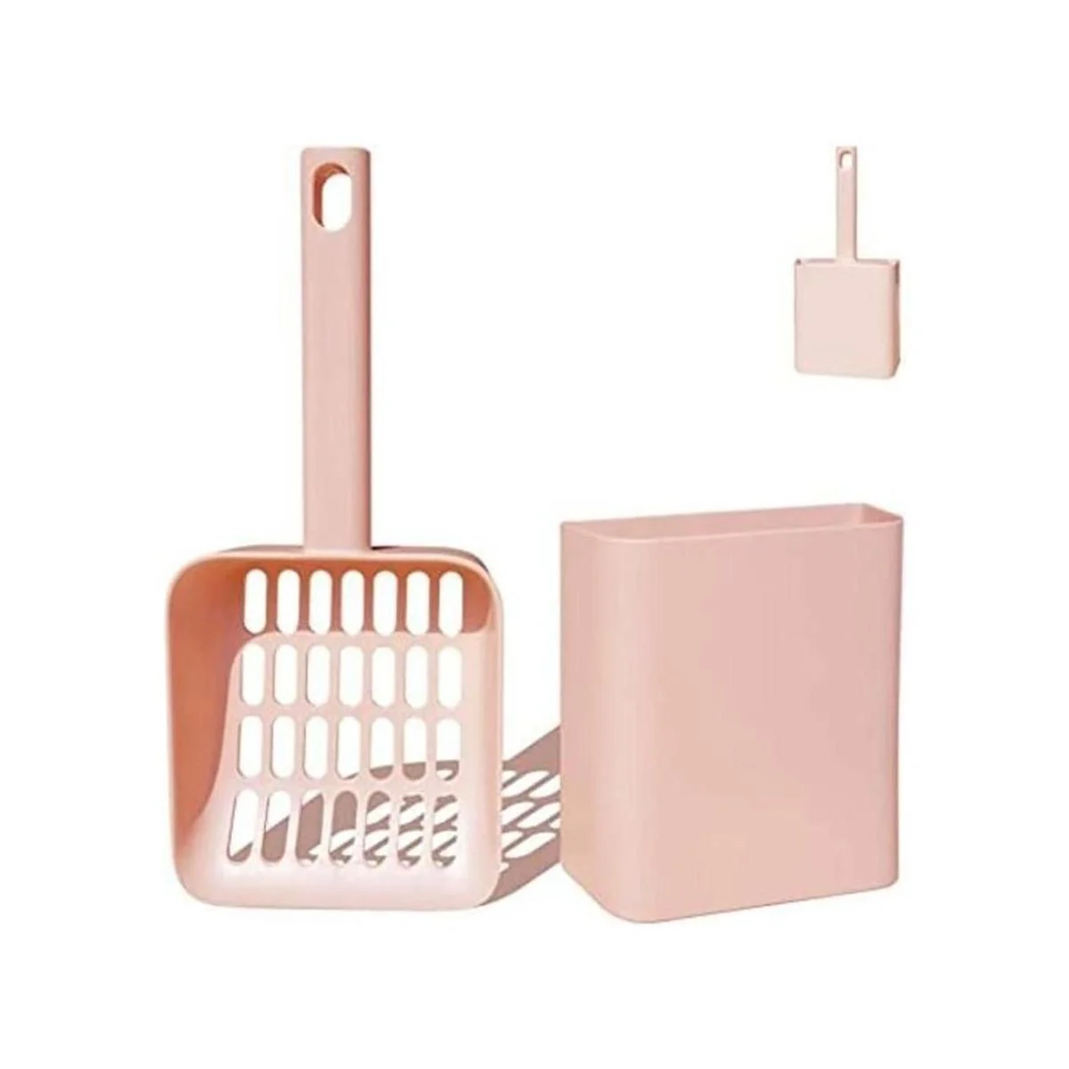 Un lugar para almacenar la cuchara de arena para gatos: la cuchara de arena con soporte para mantener la cuchara de arena dentro cuando no esté en uso, no necesitas inclinar la cuchara de arena contra la pared o simplemente sentarte en la parte superior de la caja de arena.