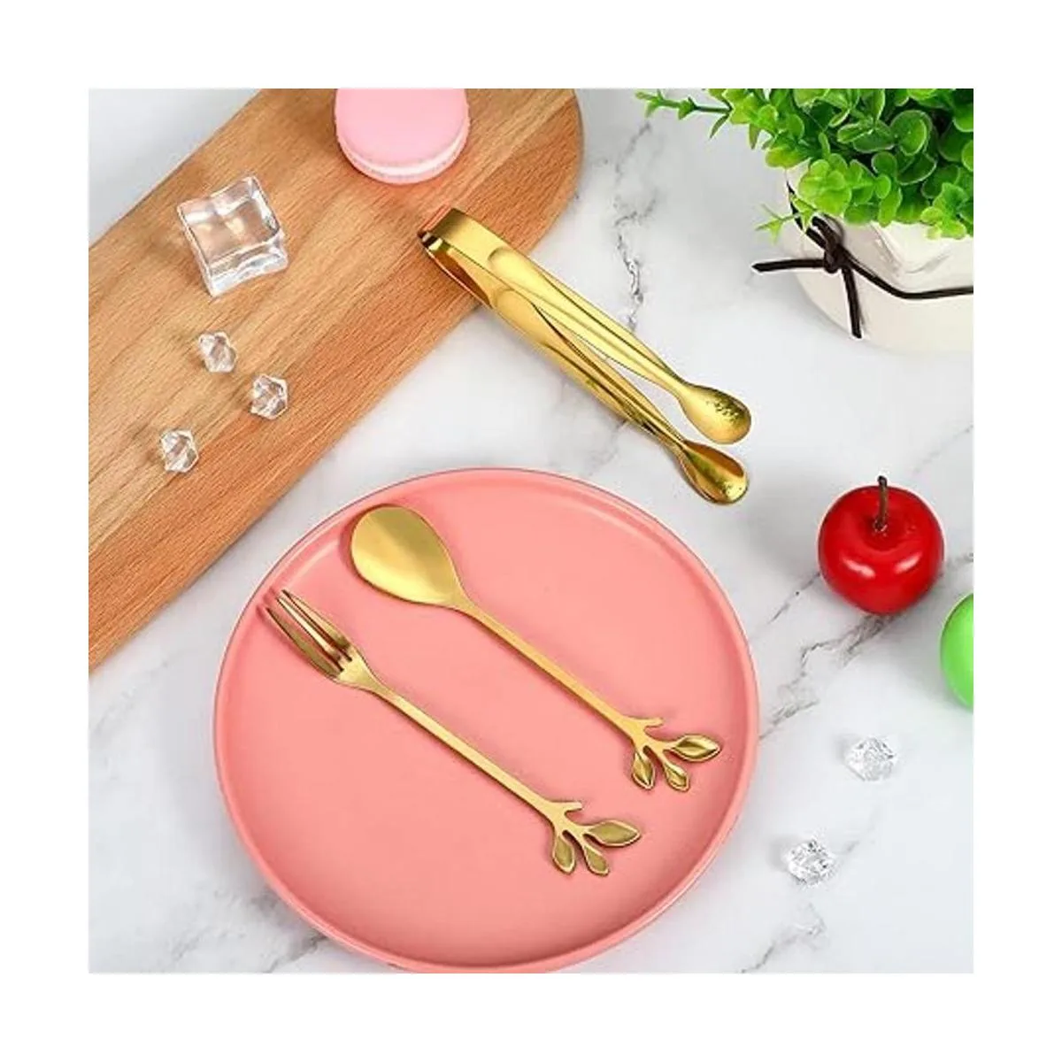 Ampliamente aplicable: las mini pinzas son adecuadas para cubitos de hielo, rodajas de limón, gelatina, galletas, cubos de azúcar, buffet, ensalada, aperitivos, proporcionando un buen agarre para ti, y las cucharas y tenedores de postre de hojas son suministros ideales para café, té, postre, que puedes disfrutar de un exquisito tiempo de postre