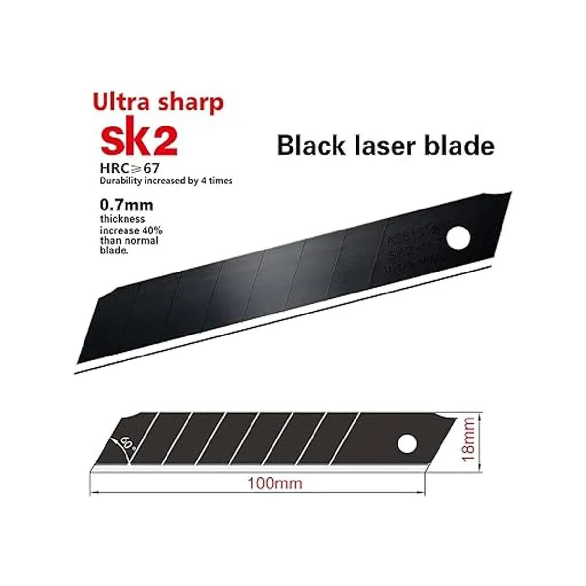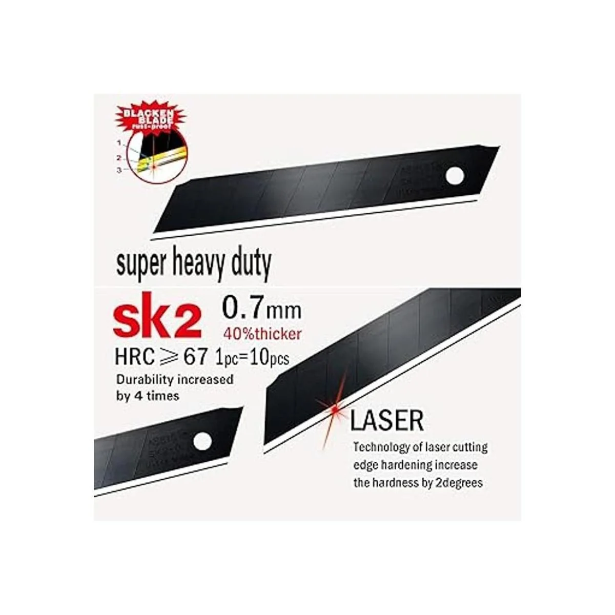 La hoja es láser negro, no se oxida fácilmente y con ultra afilado