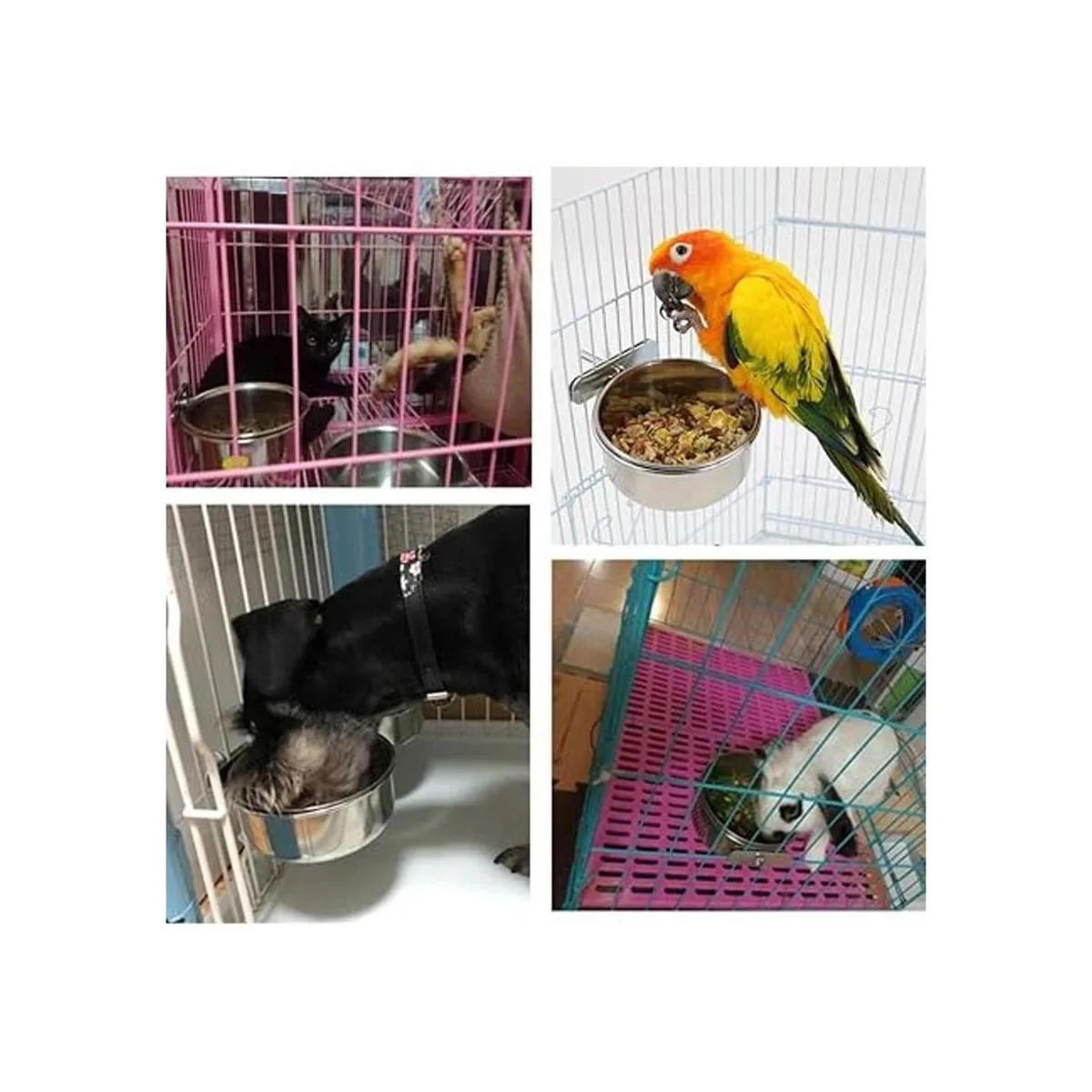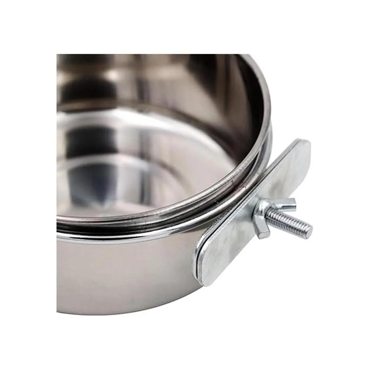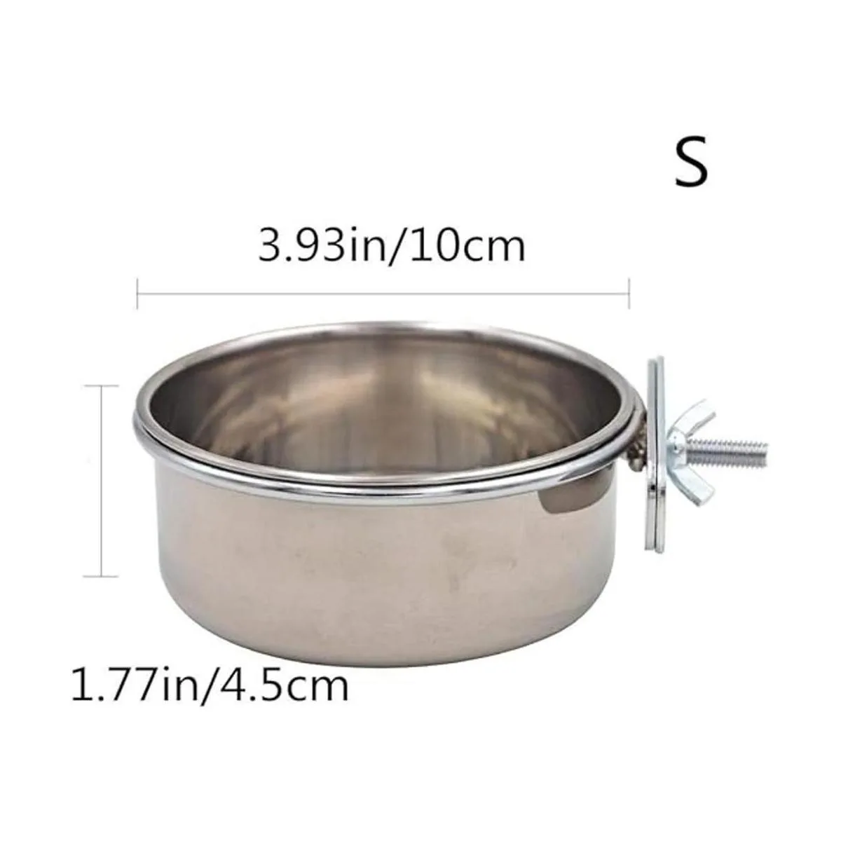 Cuenco de agua para alimentos para mascotas con soporte de abrazadera de acero inoxidable, comedero colgante para perro, pájaro, loro, gato, conejo