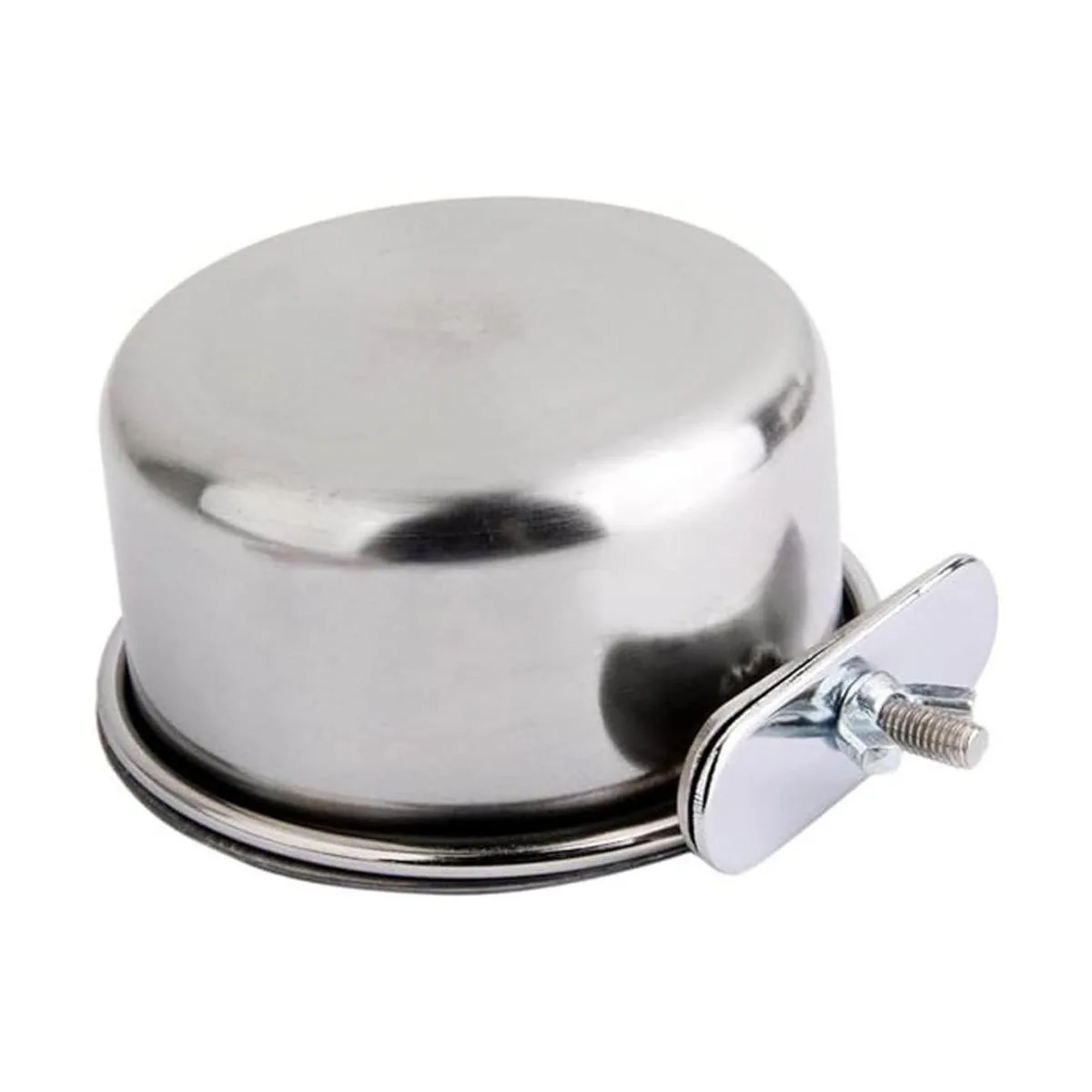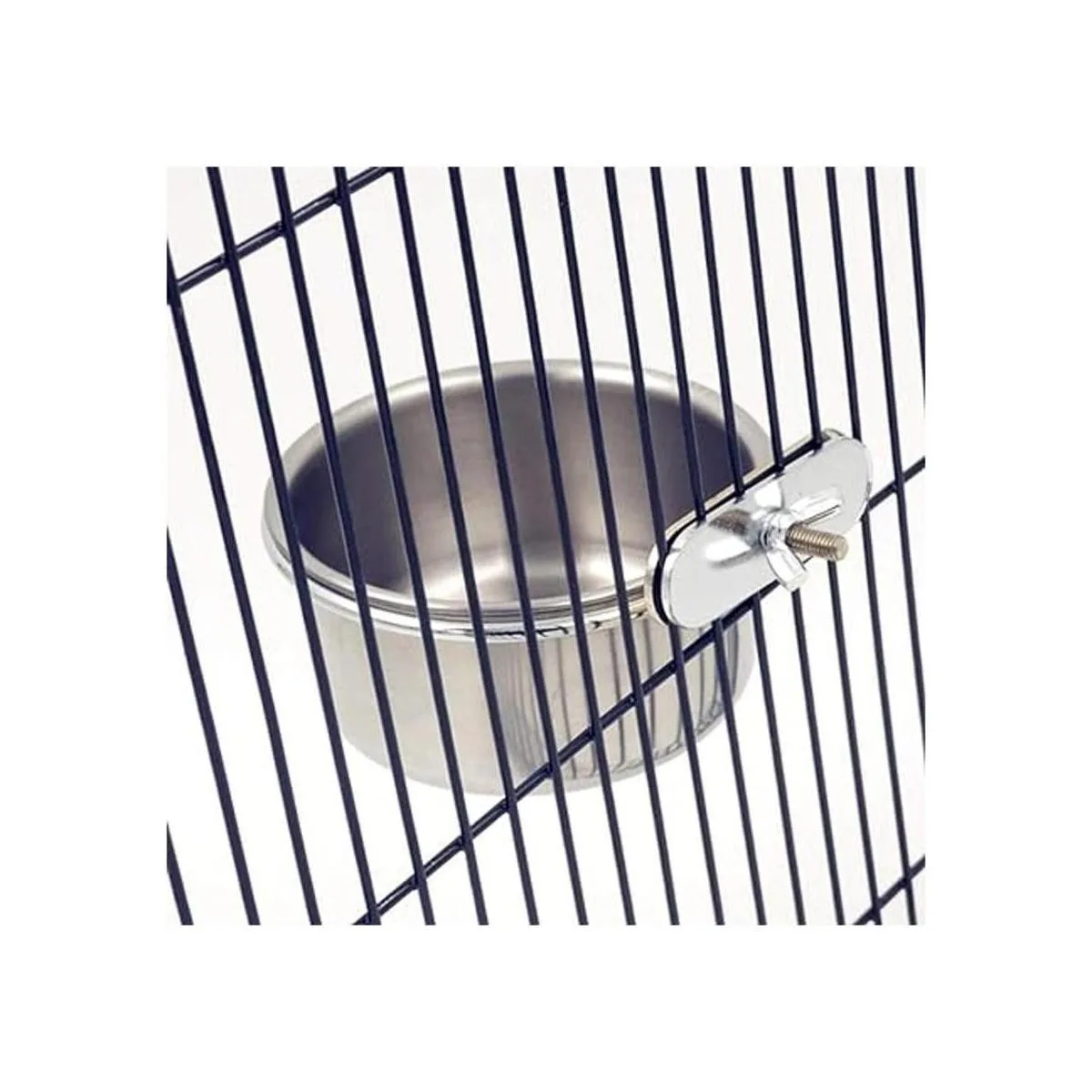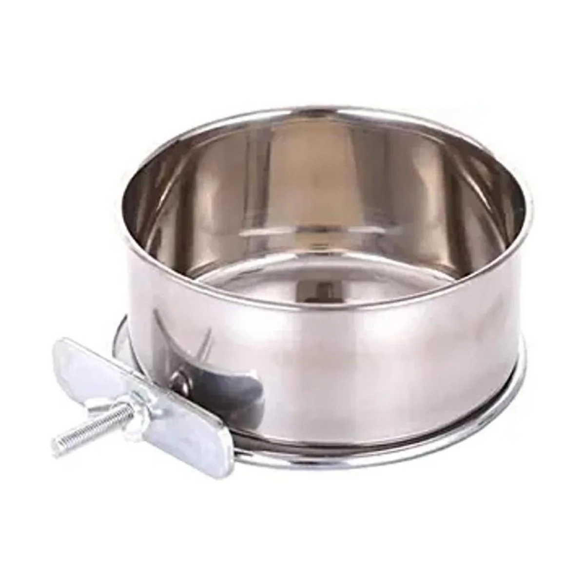 Cuenco de agua para alimentos para mascotas con soporte de abrazadera de acero inoxidable, comedero colgante para perro, pájaro, loro, gato, conejo