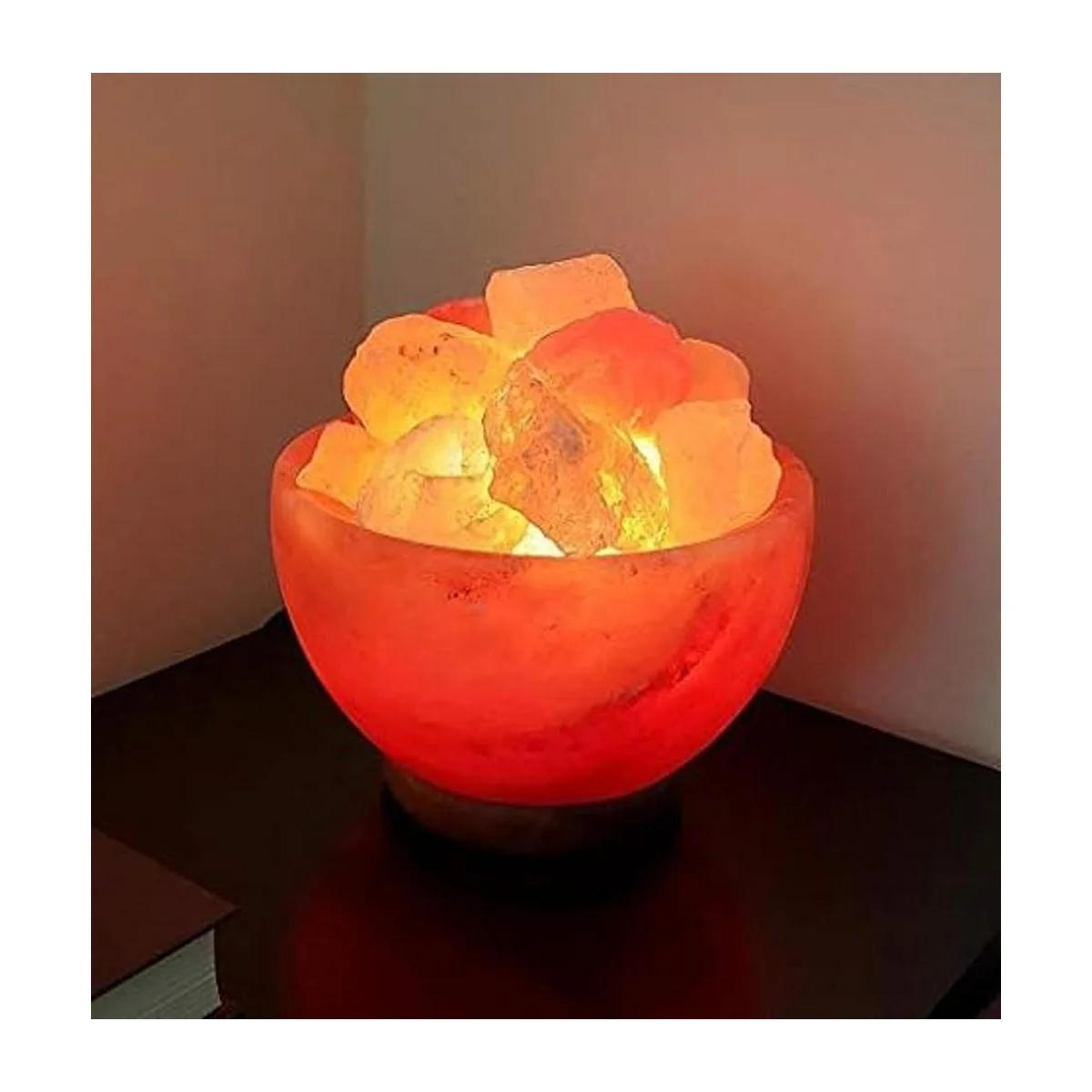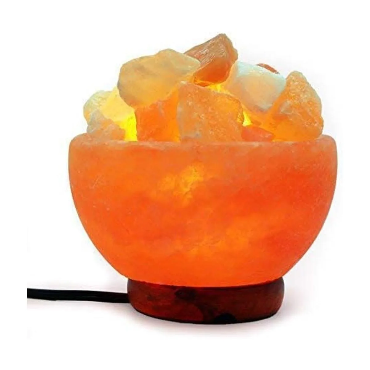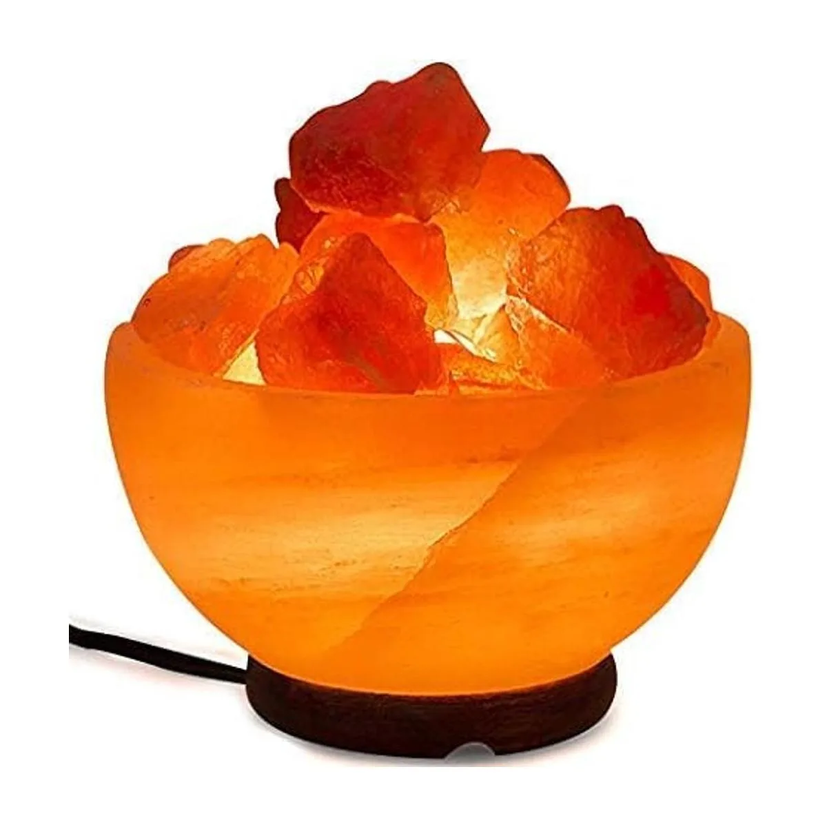 Cuenco de lámpara de sal del Himalaya con trozos de cristal natural, cordón de atenuación y base de madera clásica, calidad prémium, auténtico de Pakistán