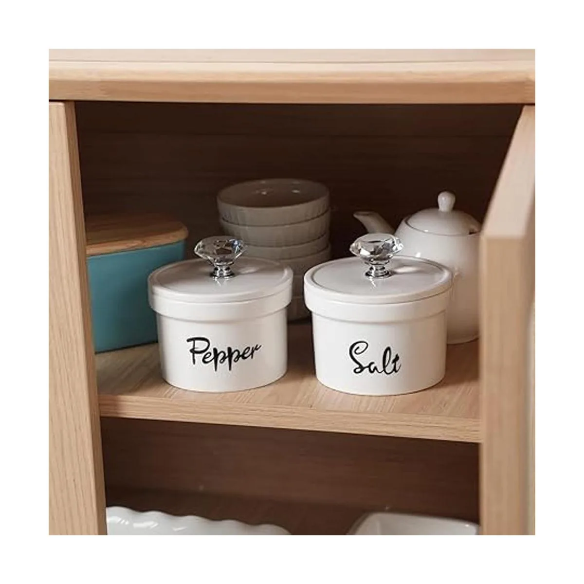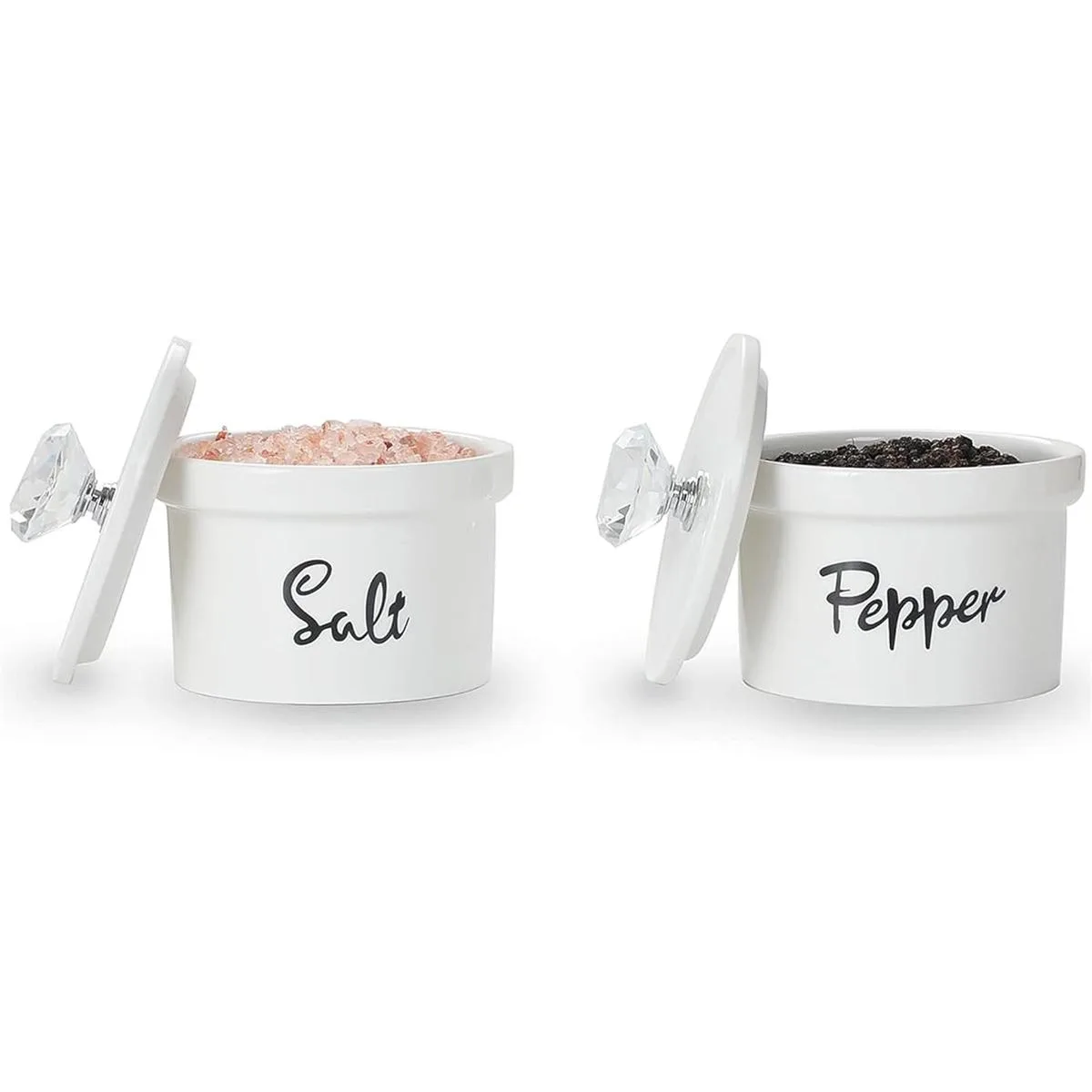 Sal transparente: los cuencos de porcelana para sal y pimienta tienen las palabras claras Salt y Pepper, que están hechos a medida para condimentos. Se adaptan perfectamente a cualquier aspecto de comedor.