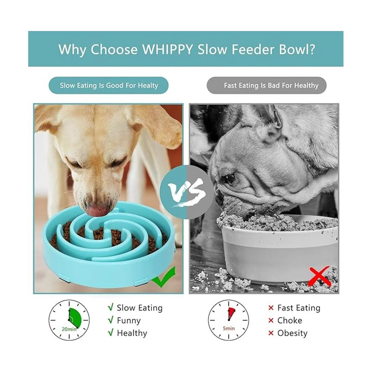 Promueve una dieta divertida y saludable El cuenco para perros WHIPPY de comida lenta está hecho de materiales seguros para uso alimentario. El divertido cuenco de rompecabezas promueve una alimentación saludable, el diseño de patrón en espiral puede ralentizar la alimentación rápida y detener la asfixia, ajustar el peso de la mascota, prolongando el tiempo de comida para evitar la indigestión, comedero interactivo y divertido. Come más lento, come más saludable.
