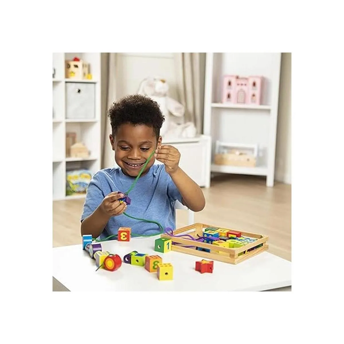 Cuentas de madera para enlazar Melissa Doug, actividad educativa con 27 mostacillas y 2 cintas