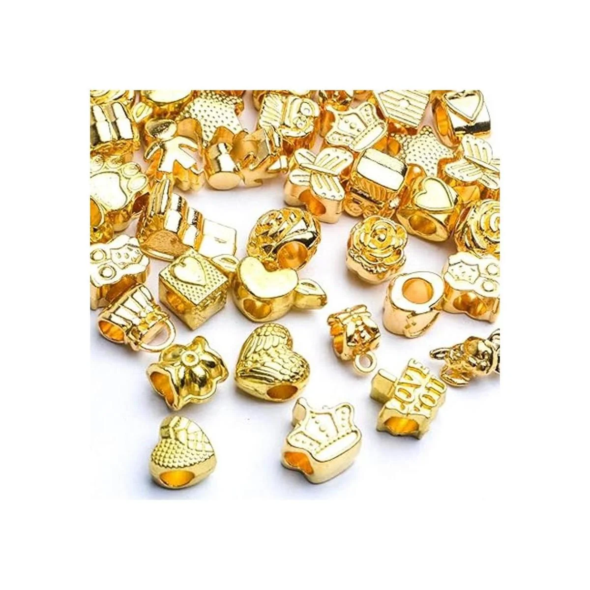 Cuentas espaciadoras doradas, 3.53 oz grandes agujeros espaciadores cuentas de aleación de metal sueltas para pulseras europeas de abalorios para hacer joyas artesanías DIY