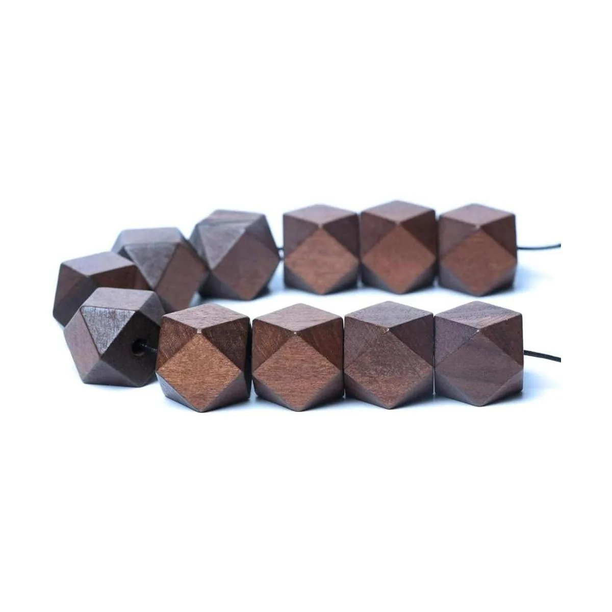 El paquete contiene 30 cuentas geométricas de madera de café.
