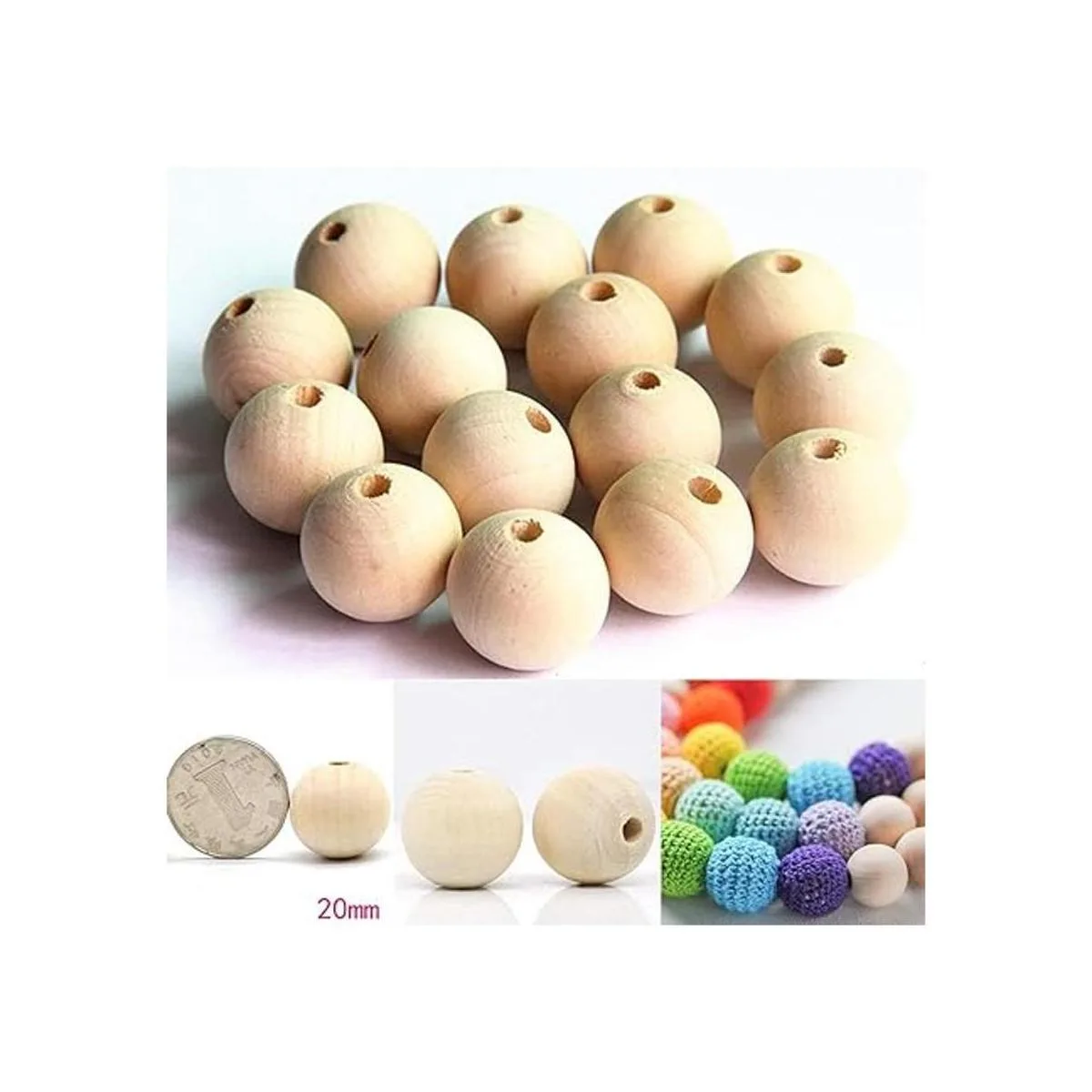 Cuentas redondas de madera de 0.787 in, cuentas espaciadoras sin acabar, cuentas sueltas para manualidades naturales, suministros de arte, pulsera, hechas a mano, paquete de 100