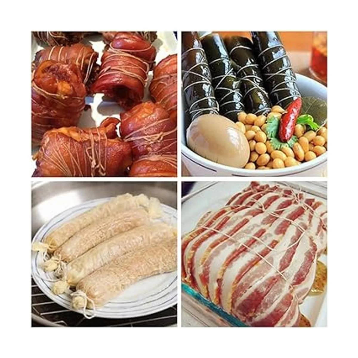 Duradero: 3 capas trenzadas, 0.039 in de grosor, 656.2 ft, la cuerda de cocción es lo suficientemente larga y fuerte para que puedas usarla en muchas ocasiones. Excelente longitud que te permite utilizar dos o más, no te preocupes por la longitud del cordel