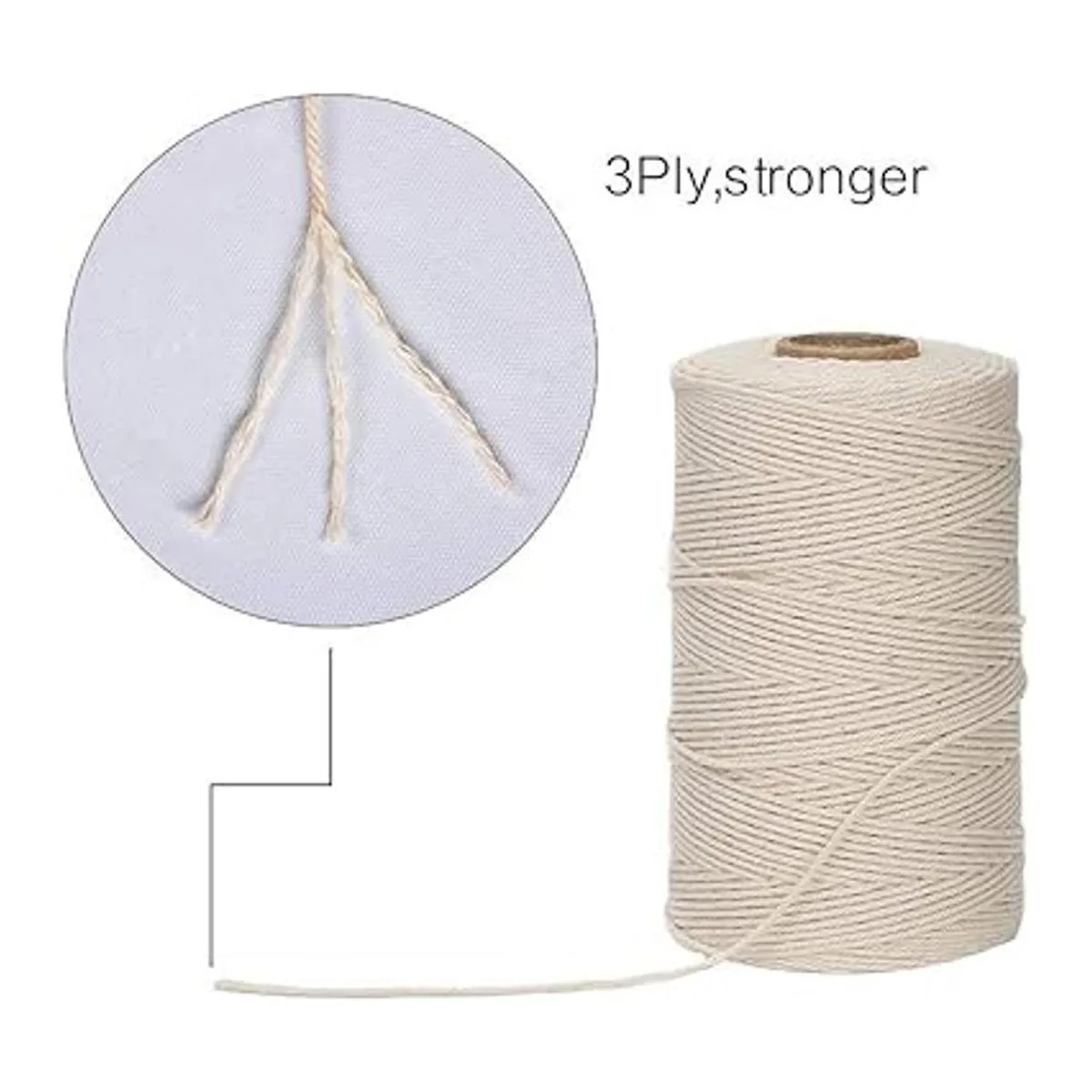 Cuerda de algodón para cocinar, 3 capas, 656 pies, 0.039 in, apto para alimentos, para cocinas, carnes y manualidades