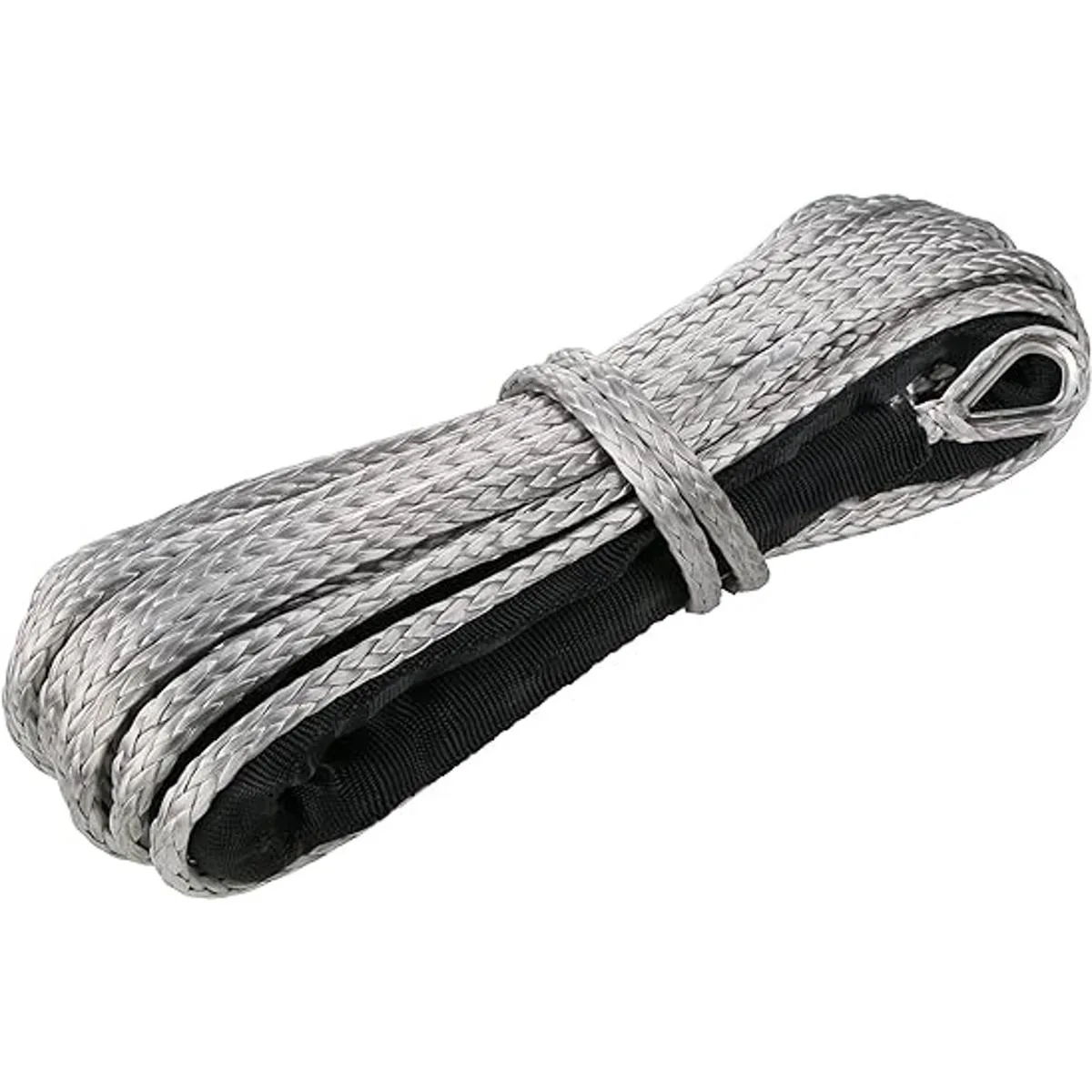 Cuerda de cabrestante sintética de 316 pulgadas, cuerda de cabrestante de 50 pies, kit de cabrestante de 7000 libras, cable de cabrestante con funda protectora negra, cuerda de nailon más fuerte que la cuerda de acero para vehículo de carretera 4WD, Jeep UTV ATV gris