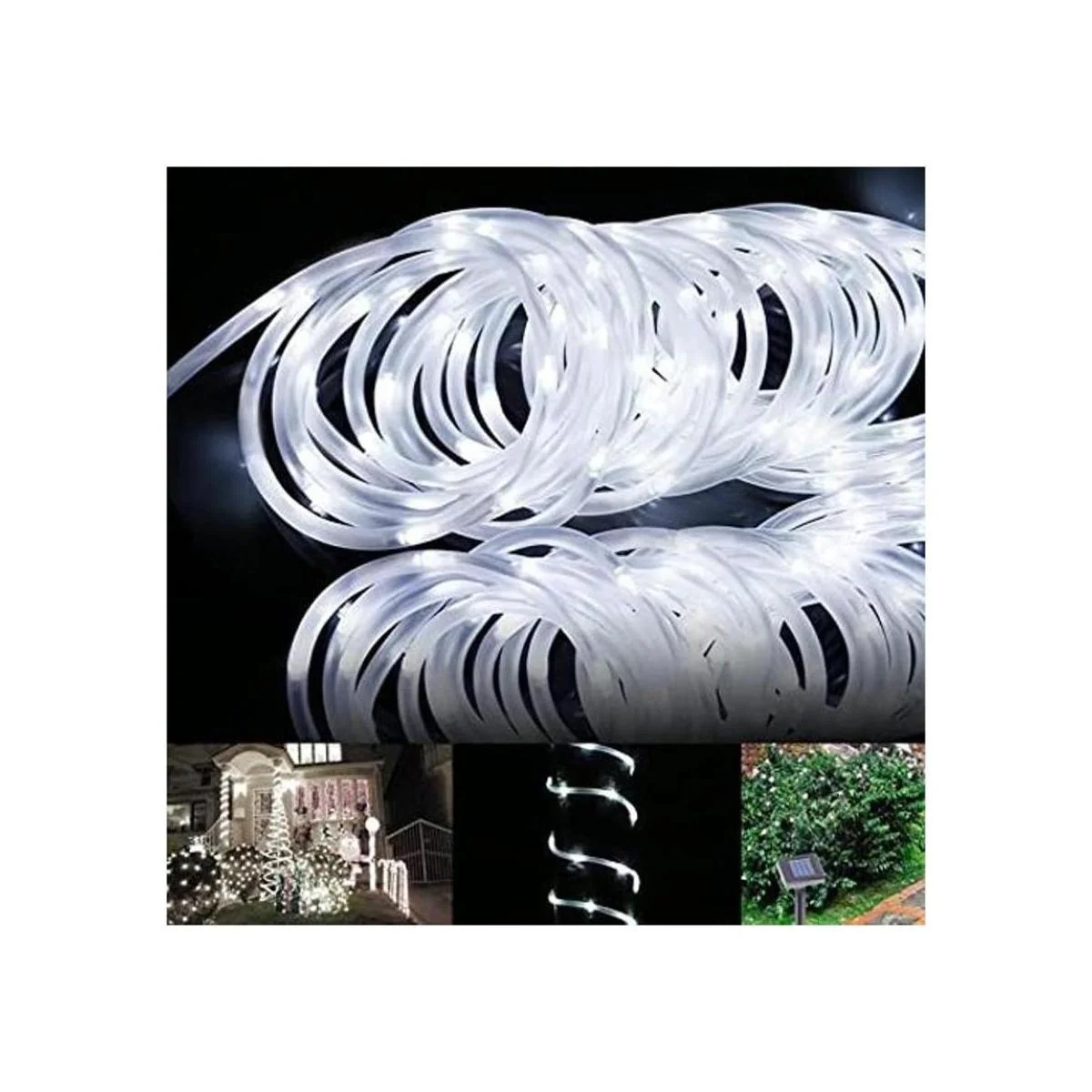 Súper brillante: nuestra cuerda de luz solar: el interior es una cadena de luz, pero hay una capa de plástico que cubre la cadena de luz interior. Toda la cuerda se ilumina con panel solar superbrillante. Cada panel solar incorpora una batería de iones de litio de 1,2 V, 1200 mAh. No como los demás con solo 500800 mAh batería de baja calidad. Nuestras luces de cuerda tienen un nuevo tubo de PVC de transparencia material, mejor transmitancia que otros tubos duros y amarillentos, excelente calidad.