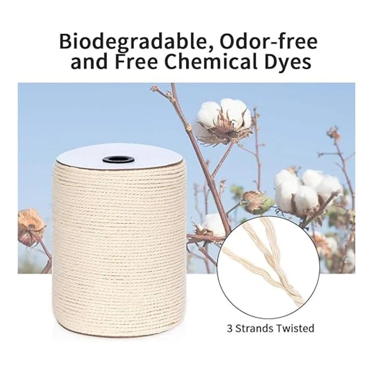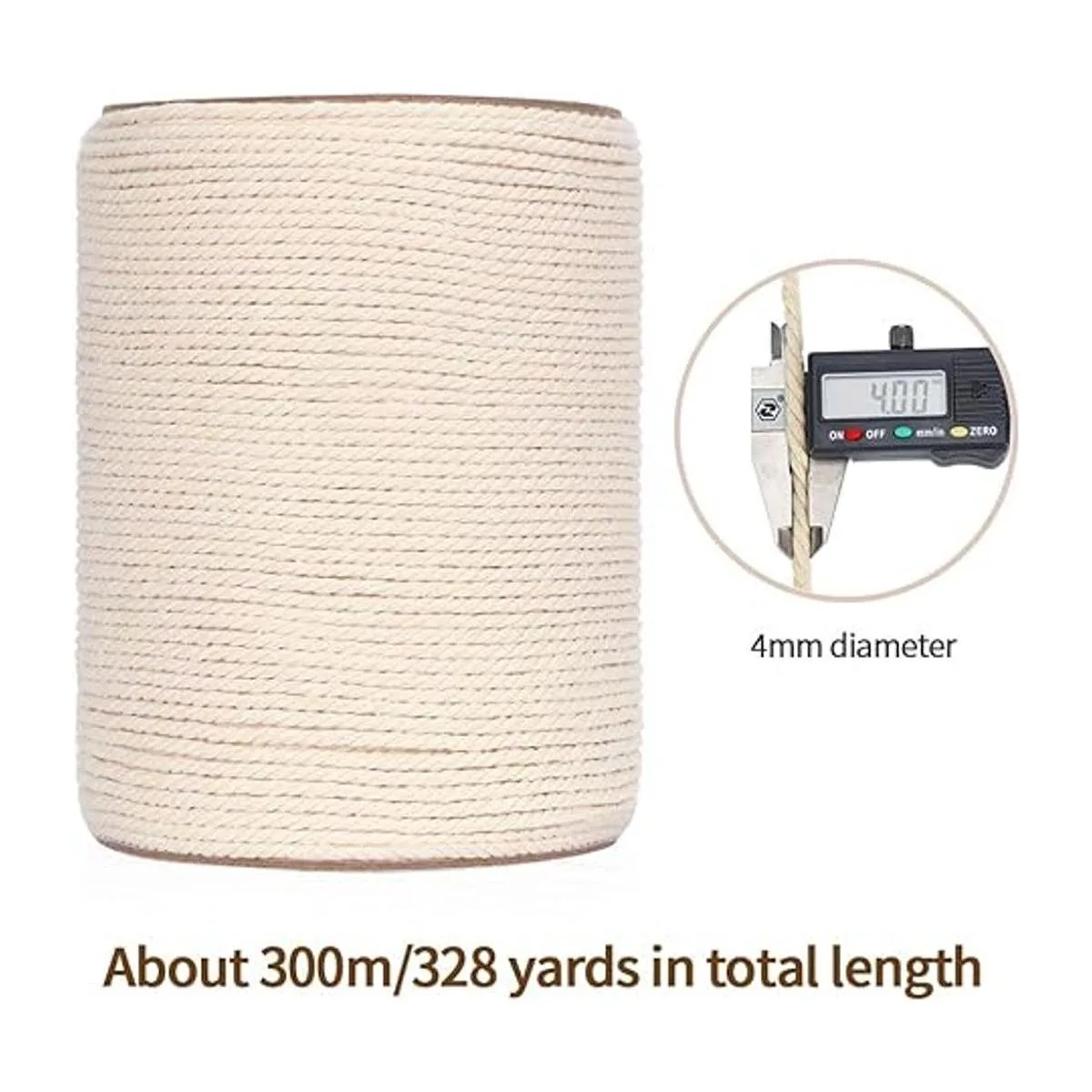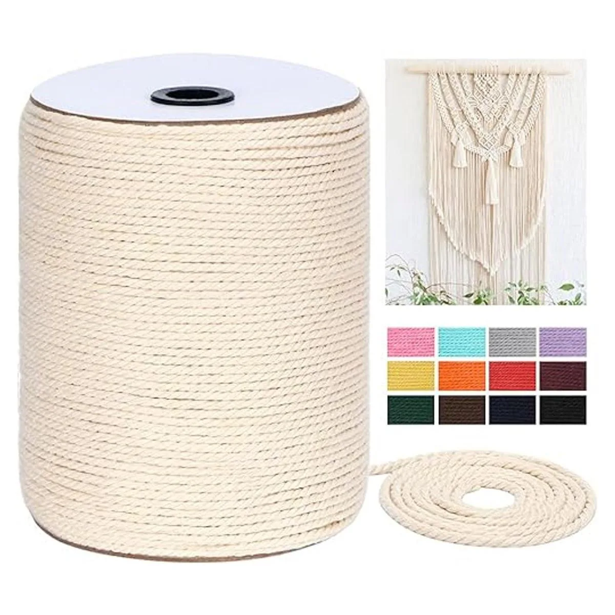Cuerda de macramé de 0.157 in x 328 yardas 984 pies, cuerda de algodón natural 3 hebras de algodón trenzado para colgar en la pared, ganchos de plantas, manualidades, envoltura de regalos y decoraciones de boda
