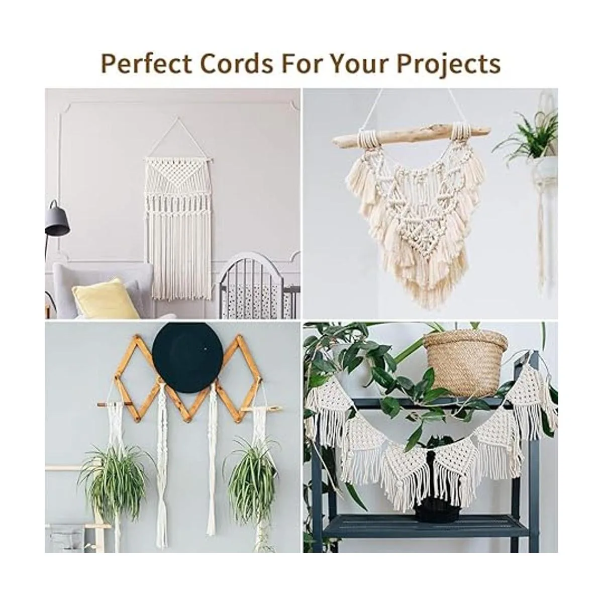 Adecuado para diferentes aplicaciones: nuestro cordón de algodón de macramé tiene un color natural muy hermoso, se puede utilizar ampliamente en diferentes aplicaciones de macramé que van desde pequeño a grande, como decoración del hogar de punto y proyectos de ganchillo. Una gran adición a tus suministros de macramé.